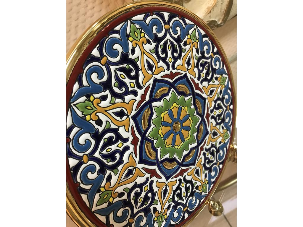 Сувенирная тарелка настенная. Вулканическая керамика, ручная работа, золото 24 карата. На стену, на стол.
