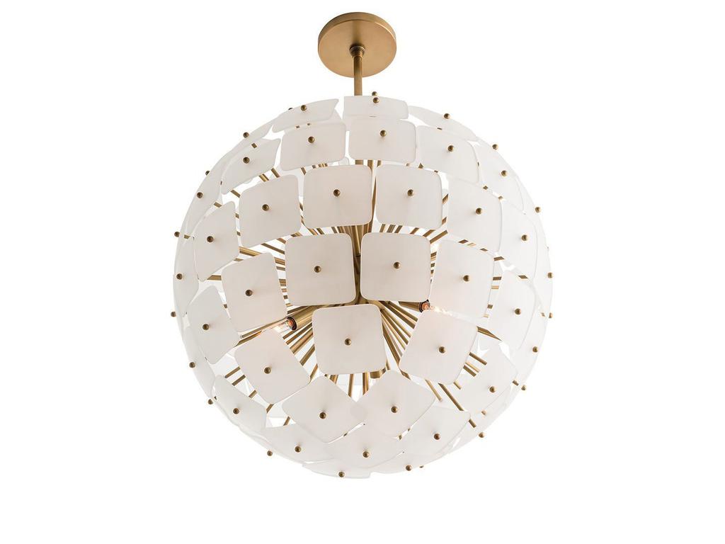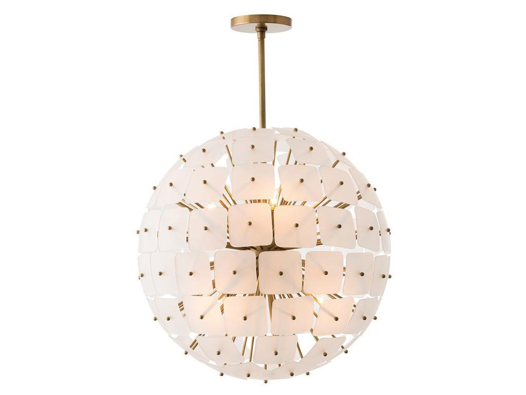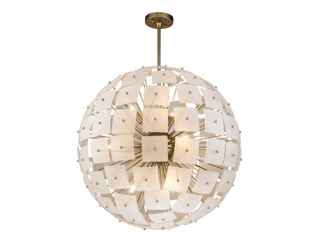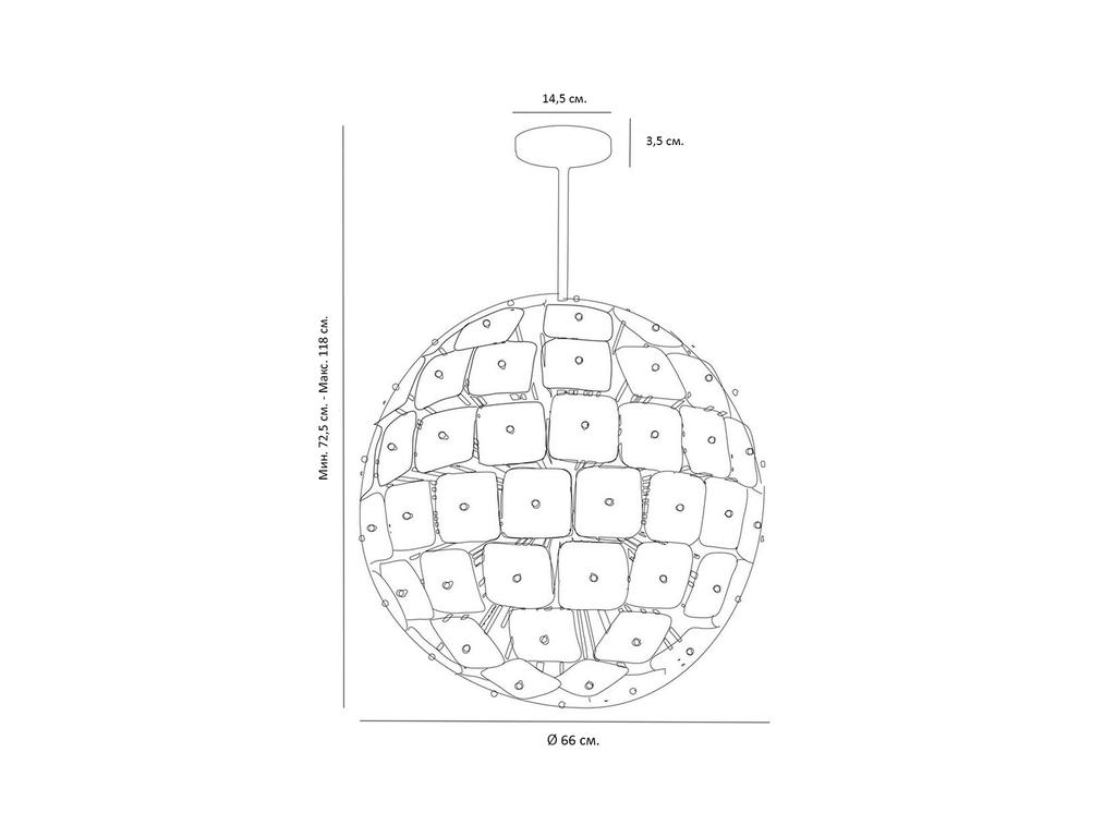 Люстру спутник “Бертран” в современном стиле прекрасно впишется в интерьер вашей гостиной, спальни или столовой, добавив утонченности и элегантности. Благодаря форме шара, люстра обеспечивает равномерное и красивое окружающее освещение, создавая уютную и приятную атмосферу. Основная особенность этой люстры – использование матовых стеклянных дисков, прикрепленных к металлическим стержням золотого цвета. Диски создают эффект диффузного света, благодаря чему помещение наполняется мягким и приятным светом. Люстра спутник “Бертран” оснащена шестью лампами с цоколем E14. Вес: 12,5 кг.