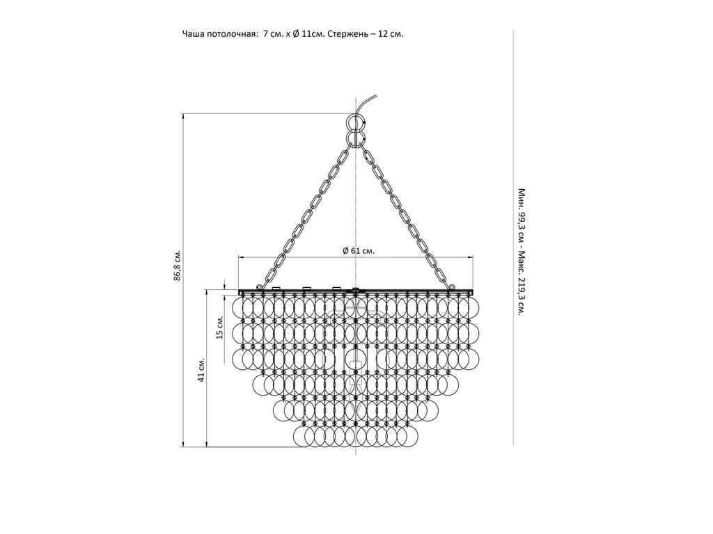 Центральным элементом люстры “Агата” является четыре ряда переливающихся белым перламутром колец, диаметром 6 см каждое. Они создают изысканный каскад, спускающийся по раме из полированного металла в цветовой гамме – латунь. Каждое кольцо изготовлено из натуральных ракушек, имеет уникальный оттенок и переливается разными оттенками белого, создавая неповторимые отблески под воздействием освещения. Металлическая рама, которая поддерживает и разделяет кольца, обеспечивая высокую прочность и долговечность. Материал: Каркас – Металл. Цепь – Металл. Кольца – Натуральный перламутр. Длина цепи: 120 см. Длина провода: 140 см. Количество ламп: 5 шт. Тип цоколя: E14. Мощность лампы: 40 Вт. Степень защиты: IP20. Чаша потолочная: 7 см. – Ø 11см. Стержень – 12 см. Комплектация лампочками: Нет. Требуется сборка: Нет. Вес: 7 кг.