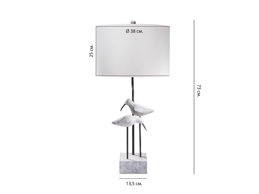 Настольная лампа “Борнео” выполнена в сдержанном стиле, что позволяет ей легко вписаться в любой дизайн комнаты. Особенностью светильника являются статуэтки пары морских птиц, которые оживляют дизайн. Эти декоративные элементы изящно закреплены на металлическом основании, что придает лампе дополнительную прочность и стабильность. Светильник создаст мягкий и теплый световой акцент, чтобы интерьер дома мог заиграть новыми красками. Тип цоколя: E27. Мощность лампы: 60 Вт. Степень защиты: IP20. Длина провода: 1,4 м. Цвет провода: Черный. Расположение переключателя: Провод. Тип переключателя: Вкл. / Выкл. Комплектация лампочками: Нет.