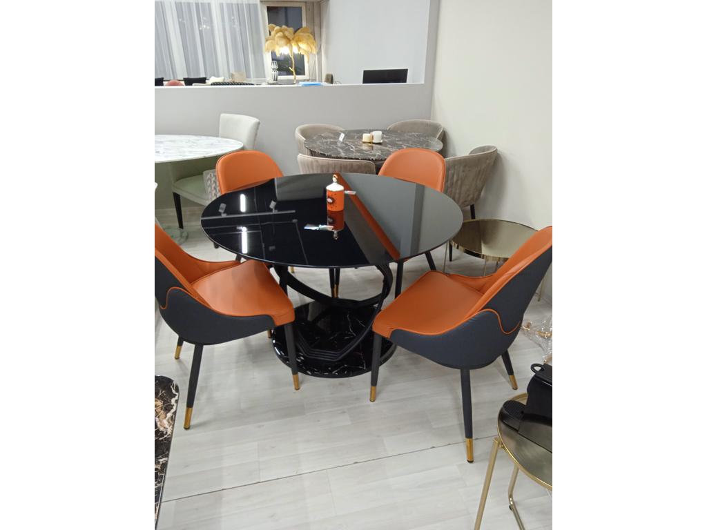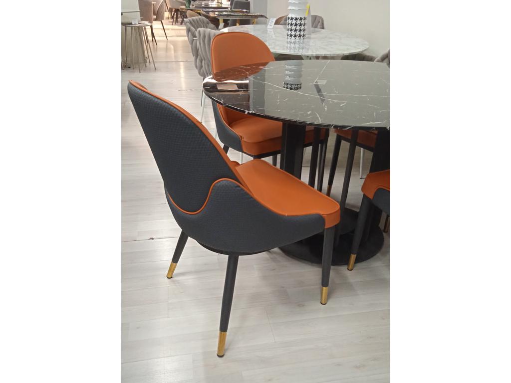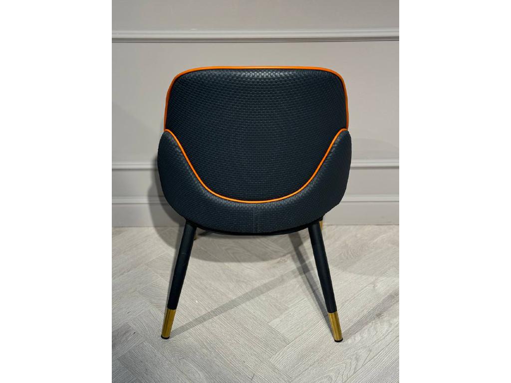 Сиденье и спинка выполнены из экокожи цвета графит и терракотовый, что придает изделию благородный внешний вид и приятную тактильную мягкость. Каркас выполнен из прочного металла с золотыми наконечниками на ножках. Минимальное колличество стульев при покупке 2 шт.