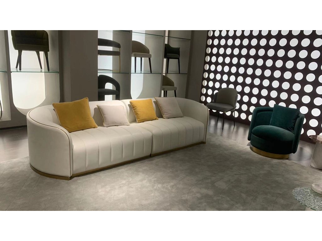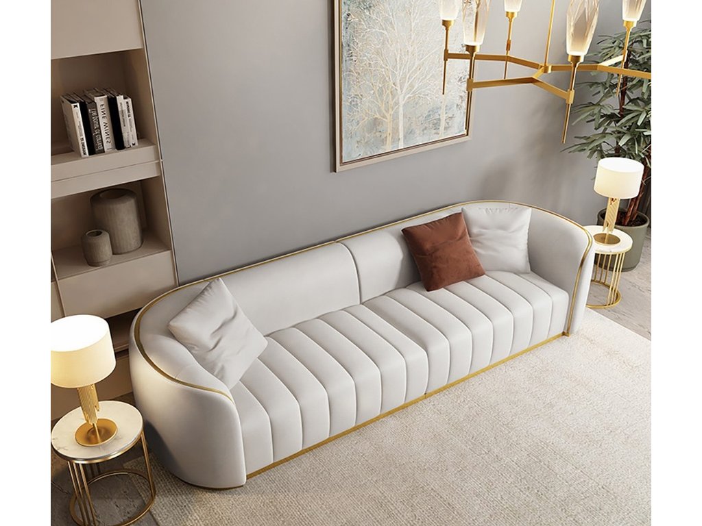 Чувственный и изысканный диван Pierre выполнен в мягкой экокоже высочайшего качества. Изящным штрихом является тонкая и плавная линия цвета латуни, обрамляющая элегантный силуэт дивана. Безупречный стиль дивана приносит ощущение роскоши и комфорта как в современный, так и в традиционный интерьер. Каркас выполнен из древесины. Наполнитель из пенополиуретана средней жесткости. Четыре подушки с декоративным кантом. Наполнитель - смешанное с волокнами пуховое перо. Цвета: горчичный и пудровый. Диван представлен в экокоже, цвет античный белый.