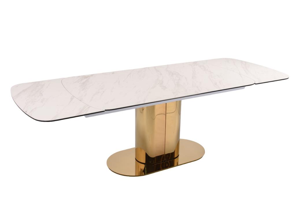 Столешница: 8мм закаленное прозрачное стекло с 3мм испанской керамикой (# TL-109 цвет белый мрамор).