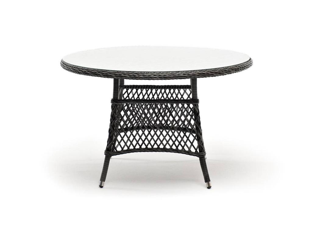 Круглый садовый стол «Эспрессо» из искусственного ротанга. Каркас изготовлен из прочного и очень легкого алюминия. Вручную оплетен синтетическим ротангом натурального графитового оттенка. Столешница покрыта прочным стеклом, толщиной 5 мм. Благодаря высокопрочным материалам, обеденный стол очень практичный и подходит для всесезонного использования даже на улице. В дополнение к обеденному столу можно приобрести ротанговые кресла серии «Латте» в аналогичном цвете. Вес 20 кг.
