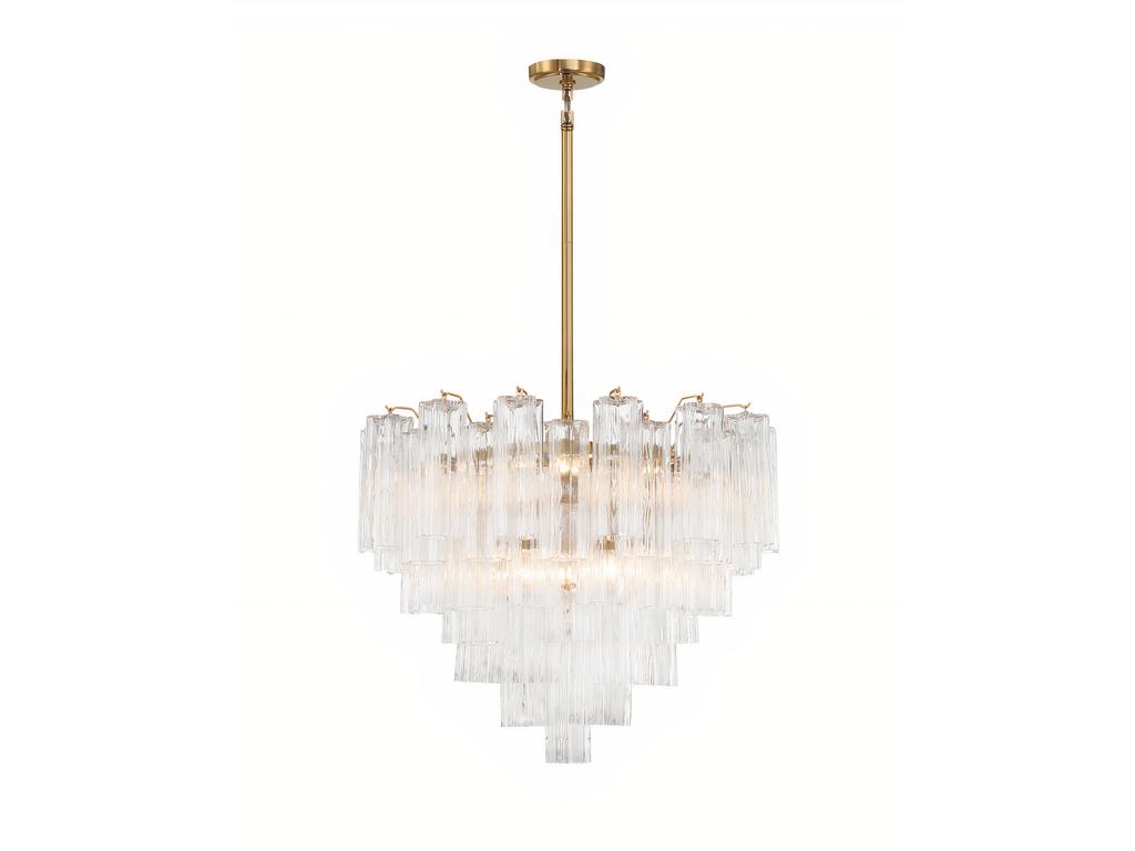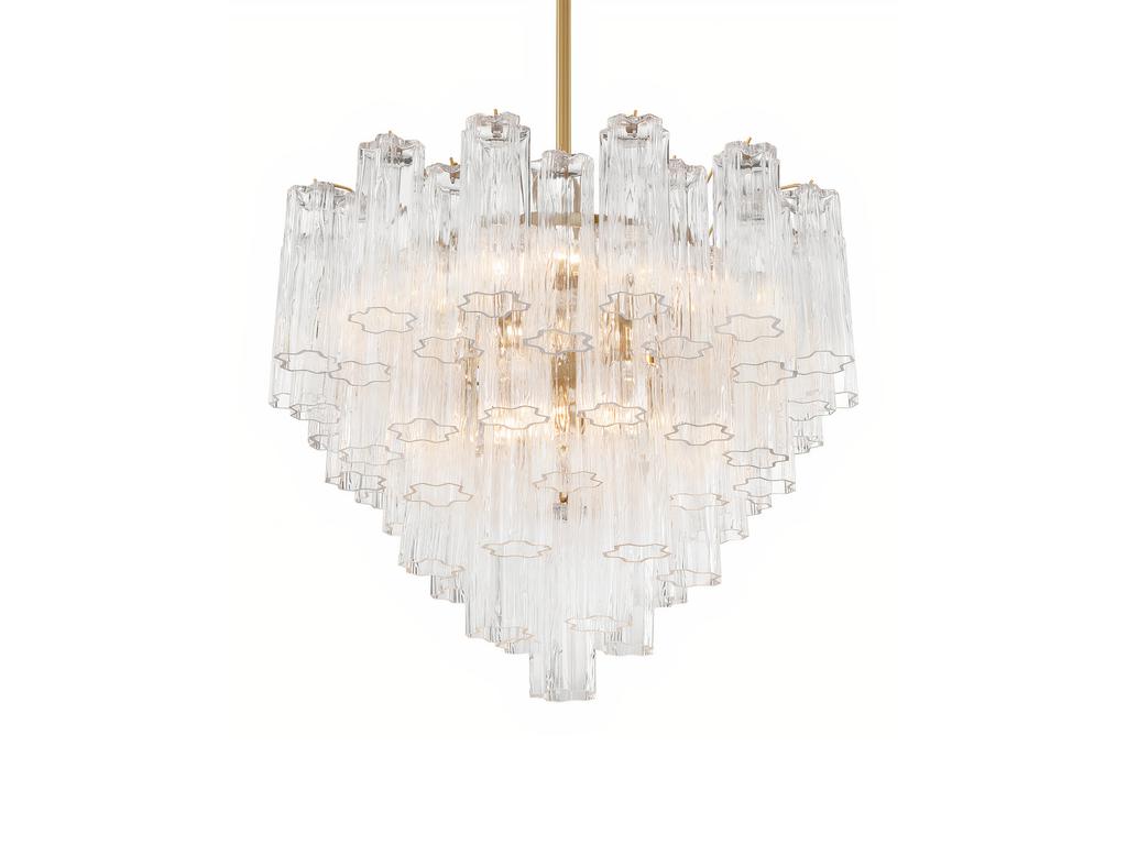 Люстра “Толбот” с прозрачным стеклом, представлена в изысканном металлическом каркасе с покрытием в цветовой гамме латунь, что придает ей стильный и утонченный вид. Уникальный дизайн светильника включает прозрачные ярусы фактурных стеклянных трубок “Трончи”. Доступны различные варианты окраски стекла: прозрачное, янтарное, дымчатое и белое, а также потрясающий осенний оттенок “Autumn“, в котором эффектно сочетаются стеклянные элементы в цветах янтарь, прозрачный. Размеры светильника: 56.5 см. х 66.0 см. х 66.0 см. Мин. – Макс. высота: 62 см. – 152 см. Материалы светильника: Основание – Металл. Плафоны – Стекло. Количество ламп: 12 шт. Вес люстры: 23.5 кг.