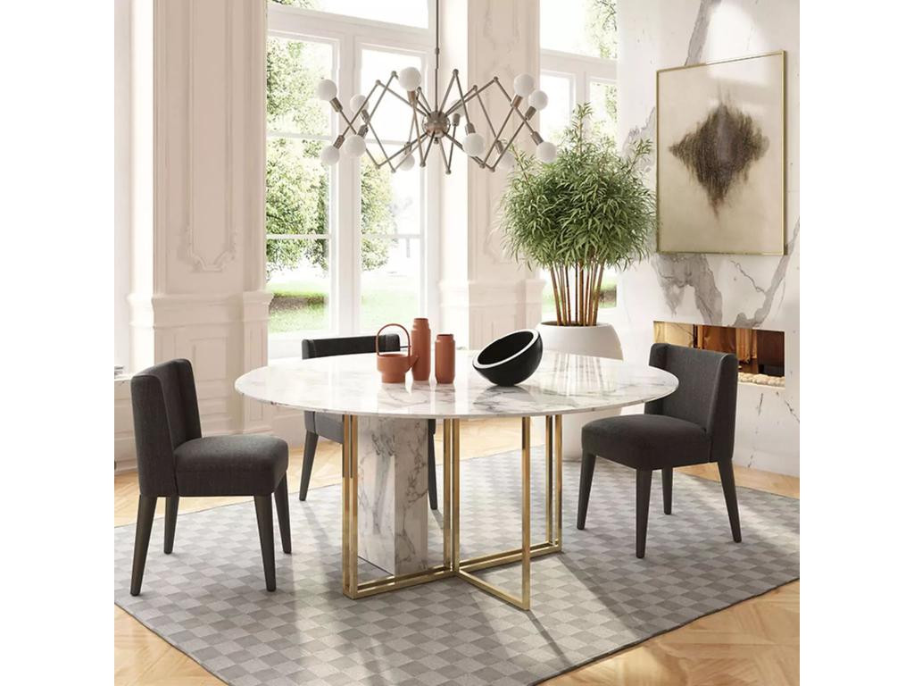 Стол Marble Cross Round будет главным эстетическим акцентом в вашей гостиной или столовой, а также прекрасно подчеркнет любой стиль интерьера, начиная от классики до современности. Стол также создаст уютную атмосферу в кофейных зонах и офисах. Круглая столешница выполнена из прочного и износоустойчивого керамогранита; поверхность глянцевая с рисунком Calacatta. Стол комфортно позволит разместить 8 персон.