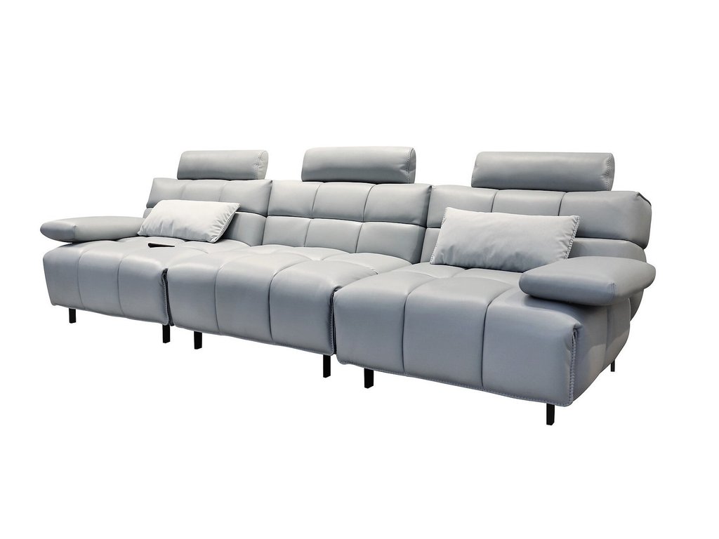 Диван-реклайнер оснащен раздвижными электромеханизмами, позволяющими подобрать наиболее удобное положение. Диван позволяет менять наклон спинки и поднимать подножку до почти горизонтального положения. Пульт управления в комплекте. Подключается к розетке 220 Вт, длина провода 5 м. Глубина сиденья — 100 см. Диван состоит из 3-х модулей. Модули поставляются в собранном виде, необходимо только соединить их между собой. Наполнитель - высокоэластичный ППУ. Отделка выполнена из высококачественной натуральной кожи с лицевой стороны. Задняя часть дивана обита экокожей, полностью имитирующей натуральную кожу лицевой стороны.