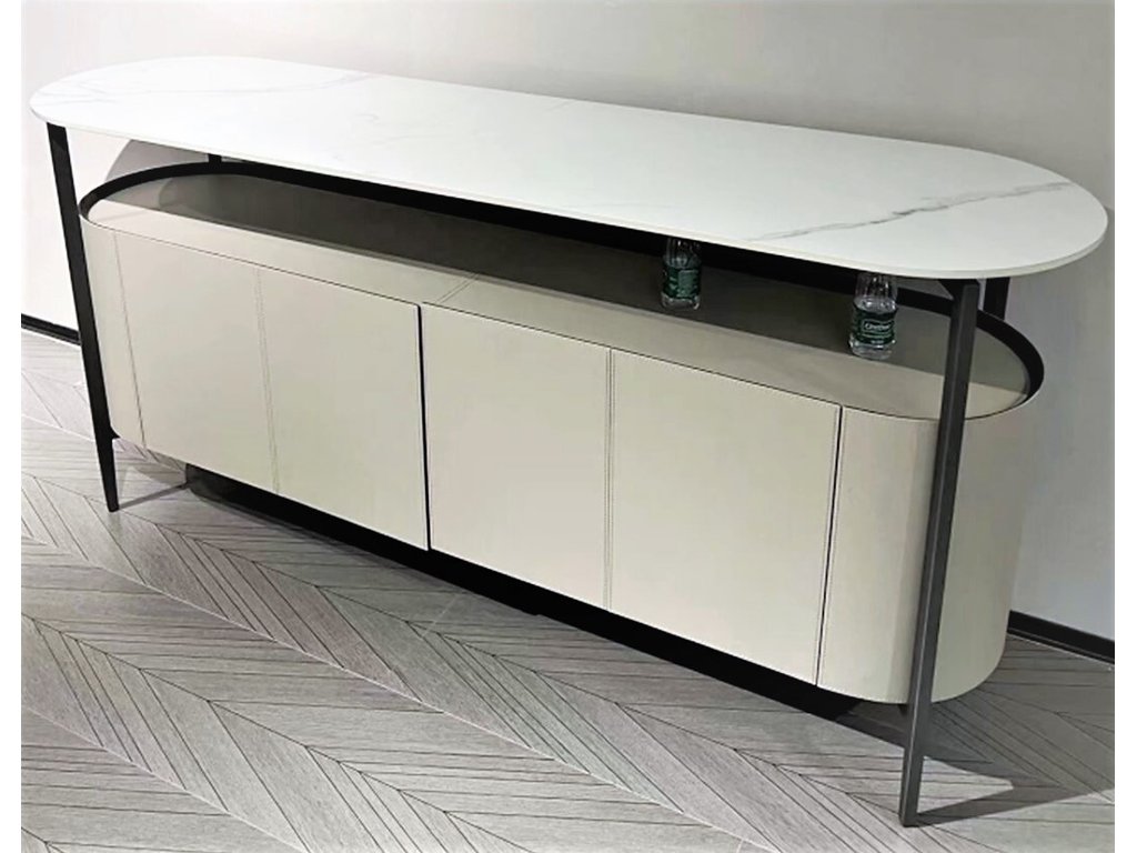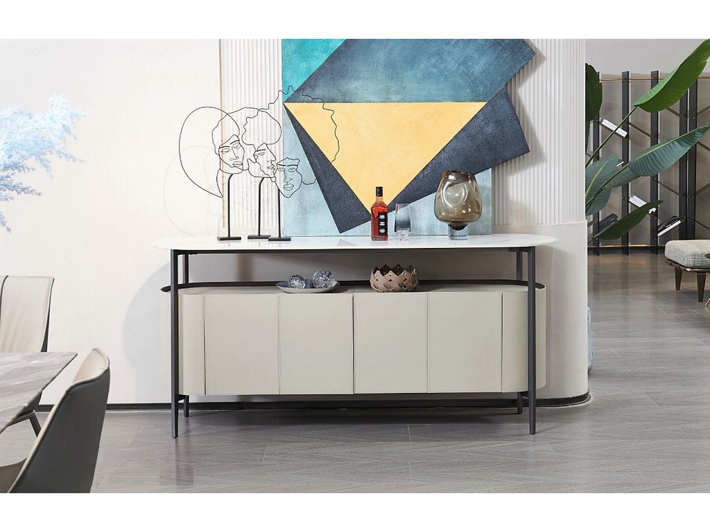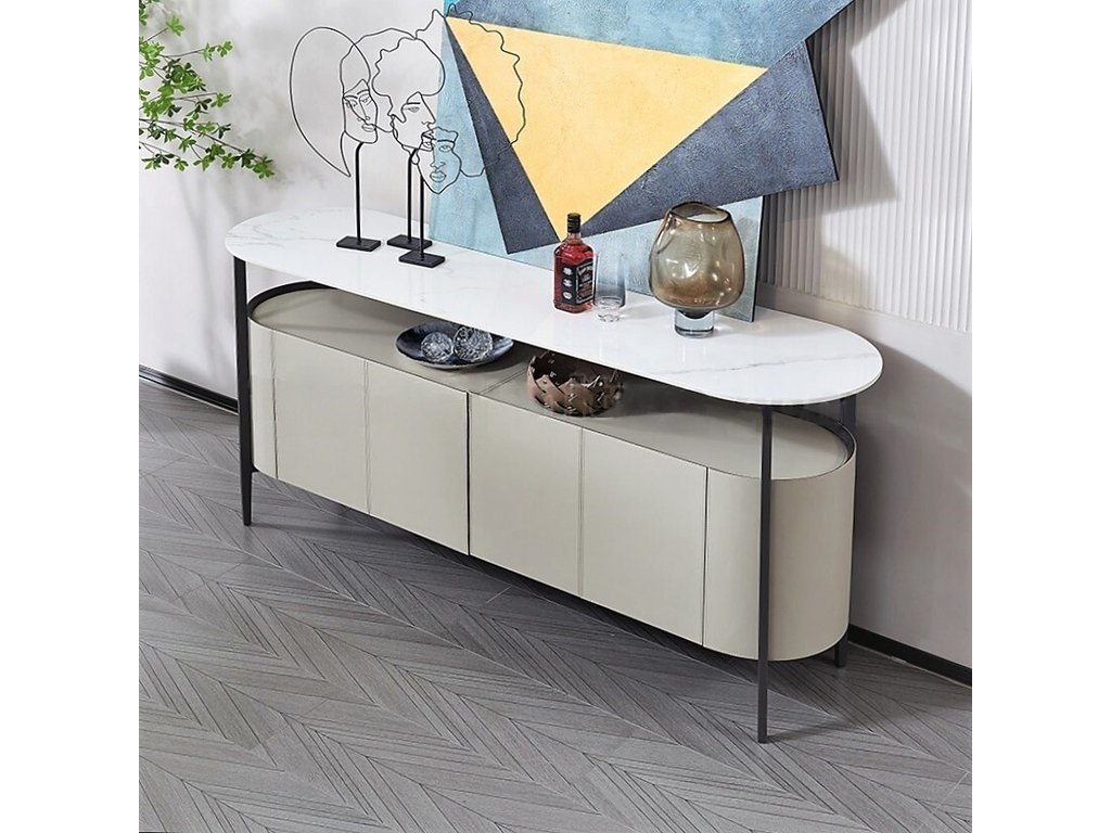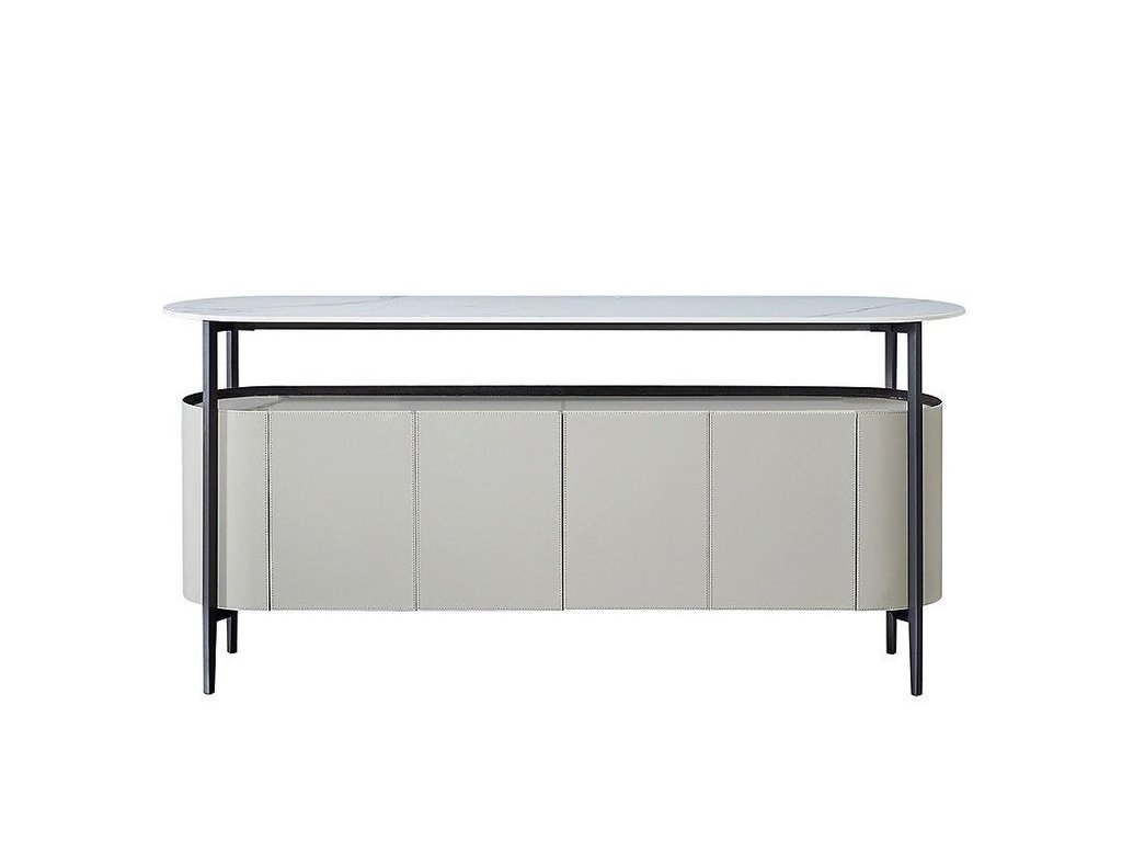 Современный и лаконичный комод создаст ощущение легкости и утонченной элегантности в спальне, гостиной или прихожей. Комод с распашными дверцами выполнен в отделке из экокожи серого цвета. Столешница из прочного и износоустойчивого керамогранита; поверхность глянцевая белая. Матовые металлические ножки придают легкий и воздушный вид. Цвет черный никель. Открытая полка и большой размер столешницы увеличивают пространство для хранения мультимедийных устройств и декоративных элементов. Поставляется в собранном виде.