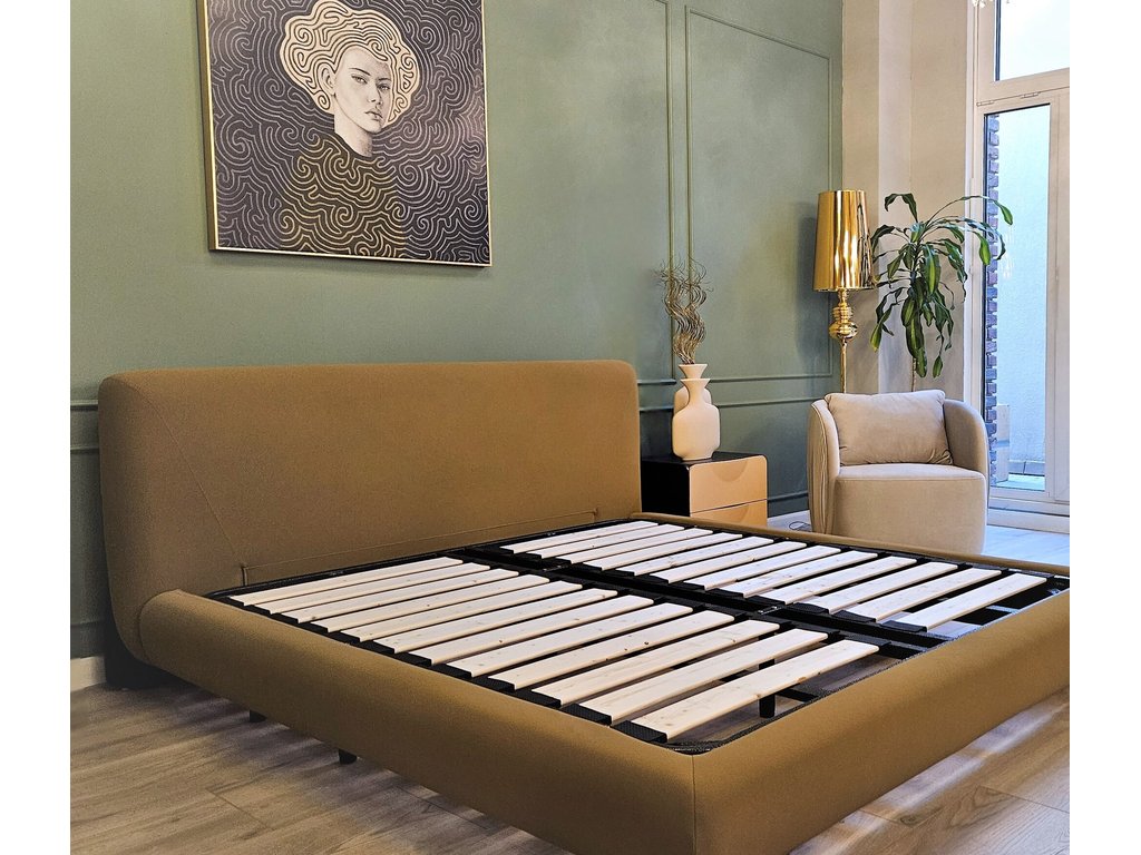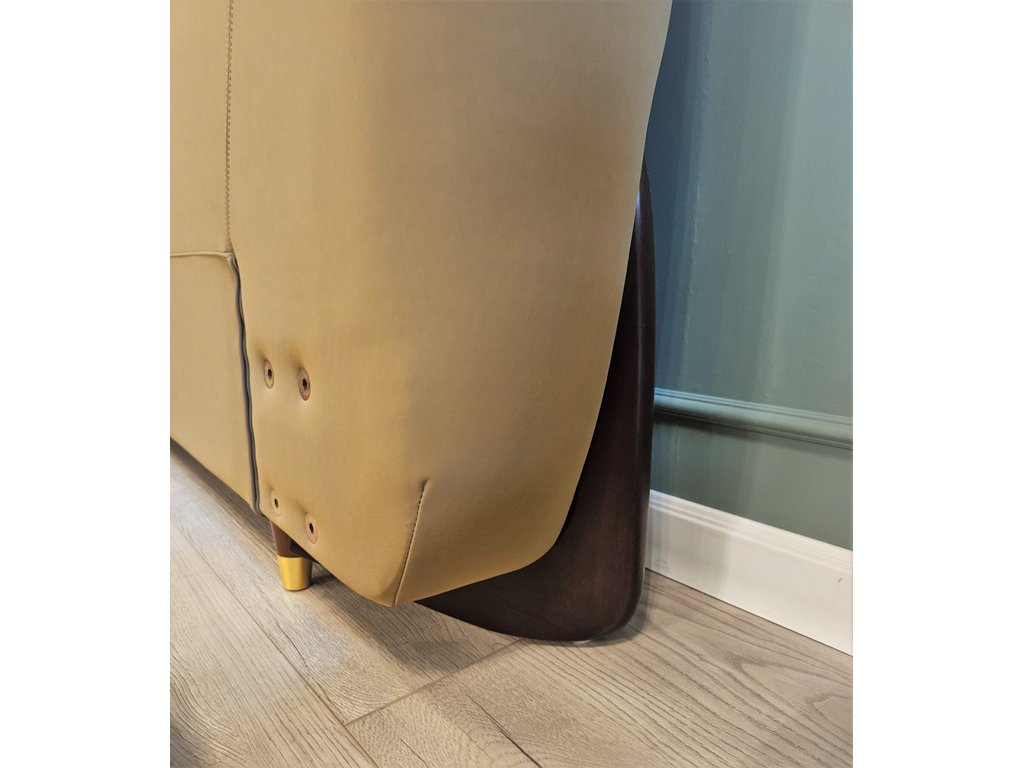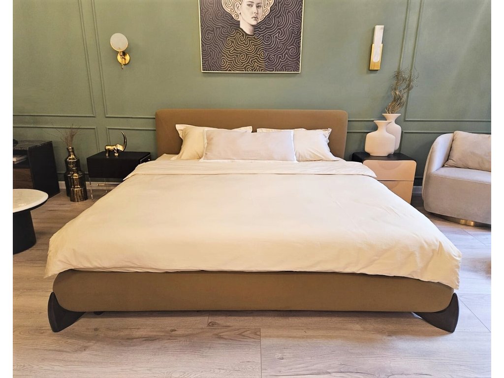 Дизайнерская кровать Softbay с мягким и комфортным изголовьем дополнена лаконичным основанием на элегантных ножках. Плавная форма спинки кровати позволяет удобно устроиться для чтения книги перед сном. Кровать представлена в мягкой микрофибровой ткани (искусственный нубук), цвет капучино. Ножки из массива ясеня, цвет орех. Каркас кровати выполнен из древесины. Реечное основание с деревянными ламелями, размер 170/195 см (для матраса 180/200 см). Наполнитель – эластичный пенополиуретан. Съемный чехол на царге. Кровать может быть установлена у стены или в центре комнаты.