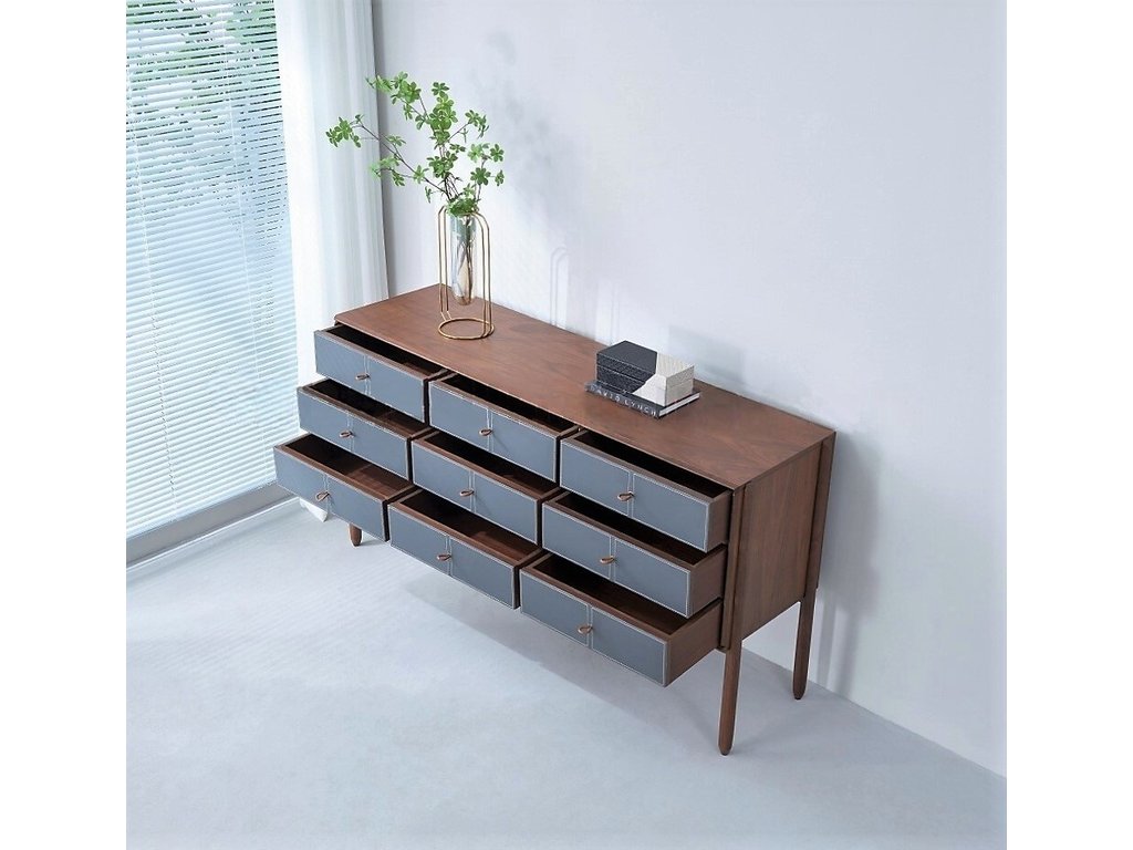 Комод Porada можно установить в любой комнате вашего дома — от гостиной до кабинета. Он станет отличным дополнением к интерьеру благодаря своему элегантному внешнему виду. Комод представлен в отделке из экокожи и шпона американского ореха. Ножки из массива. Уникальные ручки-петельки из экокожи придают комоду очаровательный вид. Девять выдвижных ящиков. Выдвижная система со скрытым креплением и доводчиками. Комод поставляется в собранном виде. Размеры упаковки, Д*Ш*В: