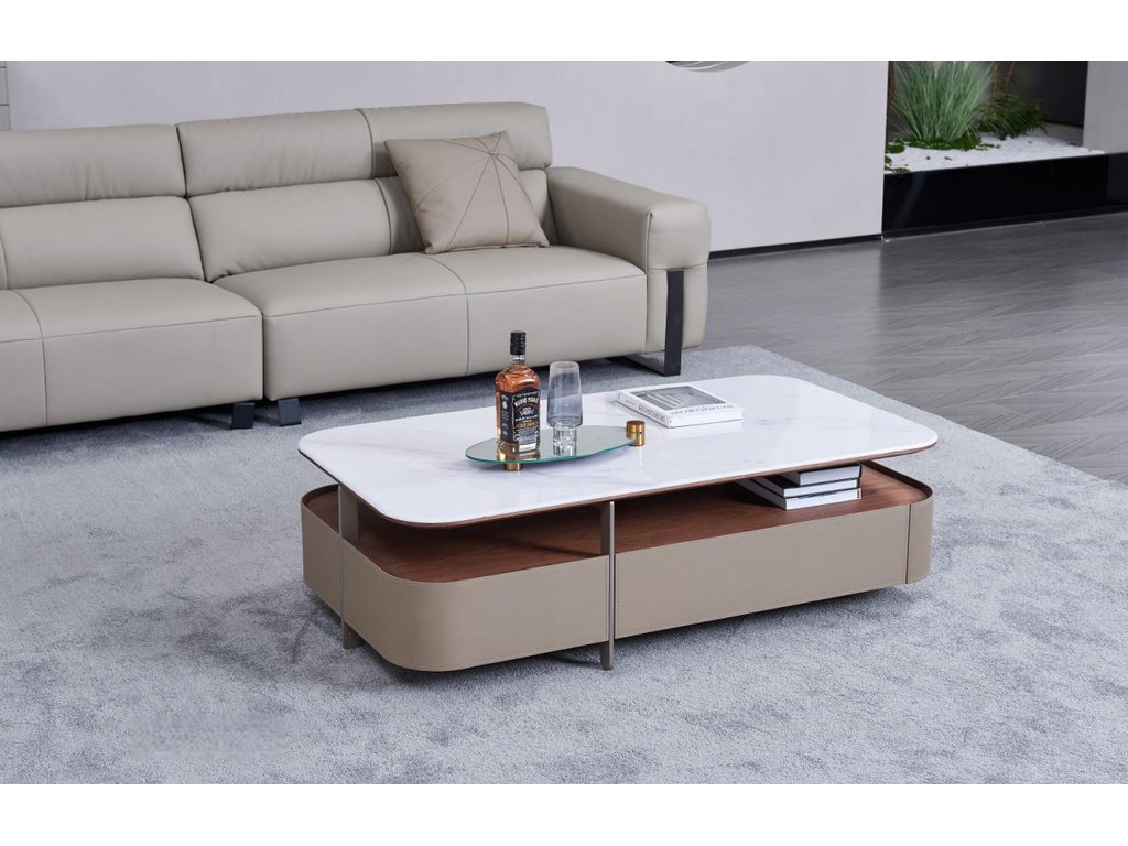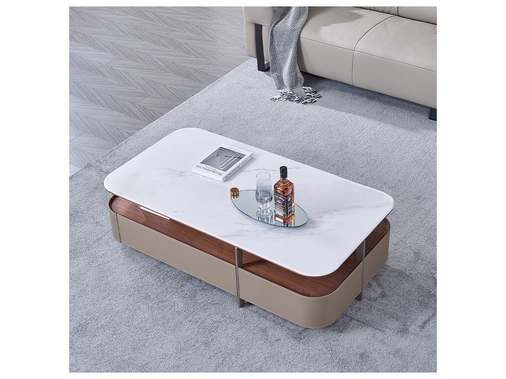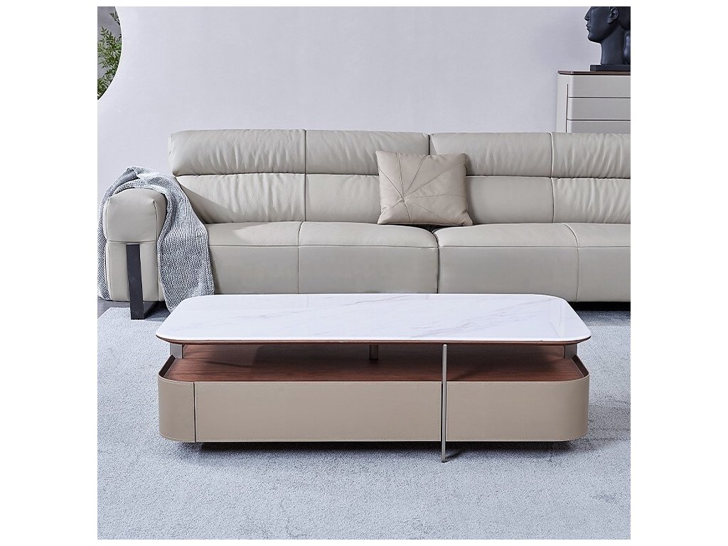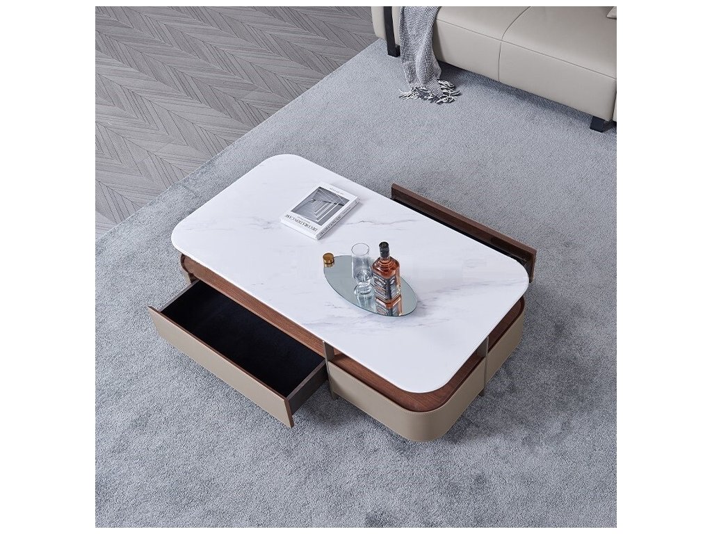 Представляем журнальный стол, в котором изысканно переплетаются понятия утонченности и прочности. Этот стол — образец контраста, в котором сочетаются различные материалы создавая конструкцию, одновременно надежную и изящную. Большой прямоугольный стол из керамогранита сочетает в себе стильную столешницу, удобную открытую полку и практичные выдвижные ящики. Небольшой изгиб края открытой полки удержит самые маленькие вещицы от случайного падения. Легкое выдвижение ящиков за внешний фасад. Выдвижная система со скрытым креплением и доводчиком. Поставляется в в собранном виде.