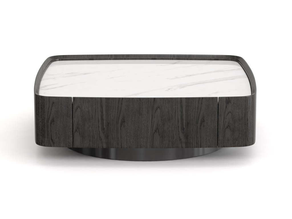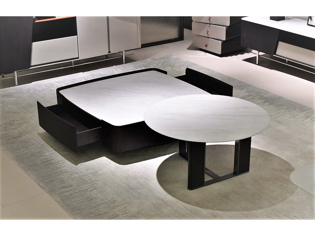 Роскошный журнальный стол представлен в минималистичном стиле с гармоничным и сбалансированным выражением. Дизайн журнального столика элегантен, а гладкая поверхность и безупречные материалы делают стол подходящим для разных стилей интерьера. Стол имеет два ящика для хранение вещей, которые вы хотите иметь под рукой. Поверхность столешницы из керамогранита, цвет белый с серыми линиями. Высокий край столешницы предотвращает падение мелких предметов. Корпус стола в отделке из натурального шпона, цвет орех. Основание столика изготовлено из прочной стали. На столешнице достаточно места для ламп, необходимых предметов, а в ящиках можно хранить нужные вещи, книги и пульты дистанционного управления. Два выдвижных ящика с системой скрытого крепления и доводчиком. Поставляется в собранном виде.