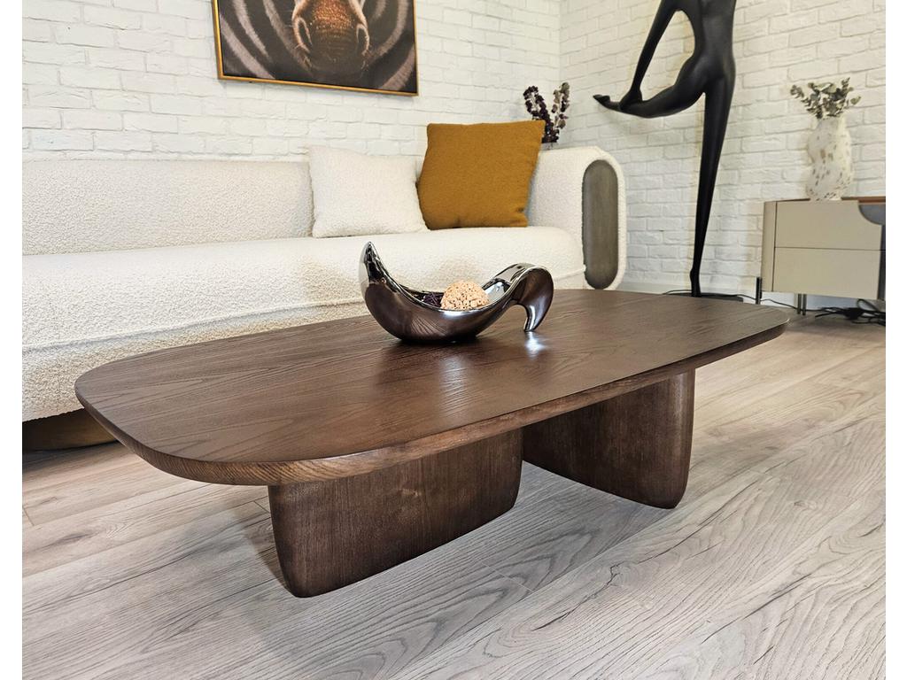 Современный в минималистичном стиле кофейный стол Tibi-Ishi, создающий сильное скульптурное впечатление является главным героем модной гостиной. Прямоугольная столешница с закругленными углами. Матовая, приятная на ощупь структура стола на элегантных округлых опорах. Шпон ясеня. Толщина столешницы 30 мм. Требуется сборка.
