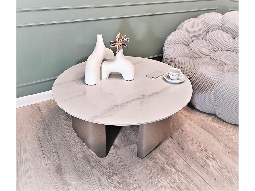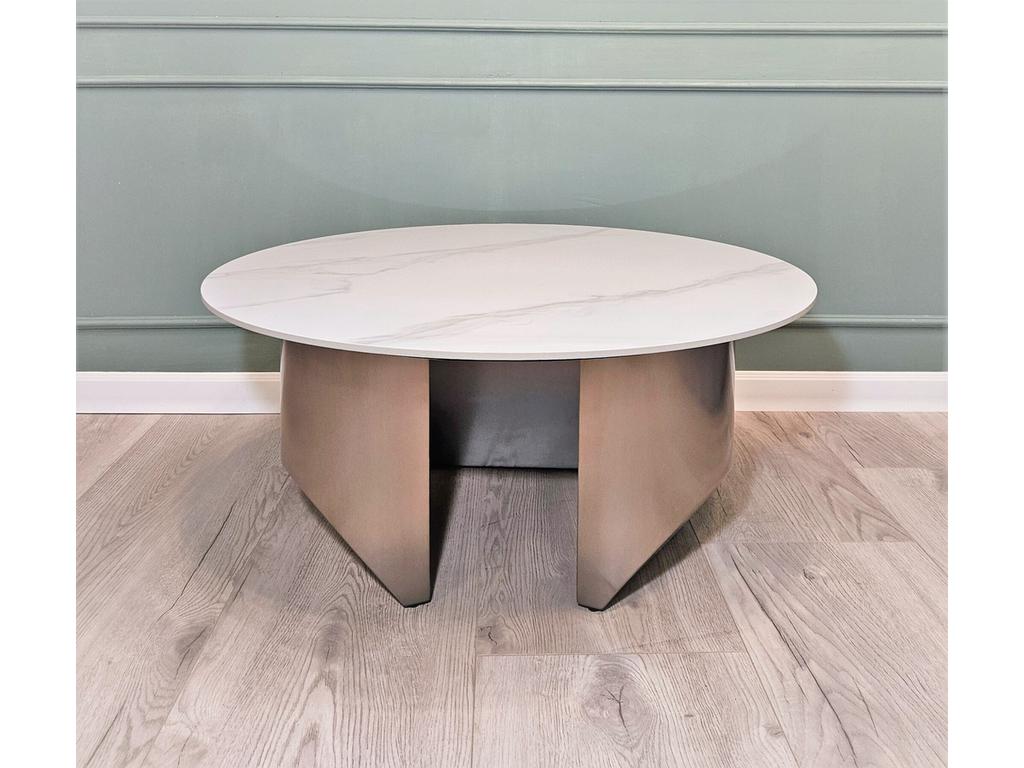 Столик журнальный с керамогранитной глянцевой поверхностью на матовом металлическом основании предназначен для тех, кто любит в интерьере элегантность и изысканные материалы. Столешница из керамогранита, цвет глянцевый белый с серыми линиями. Ножки из металла, цвет сатин матовый. Требуется сборка. Поставляется в двух упаковках, Д*Ш*В: