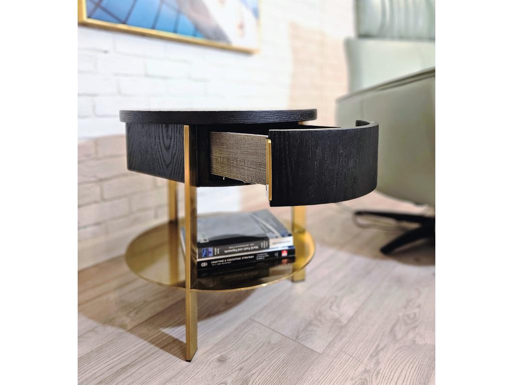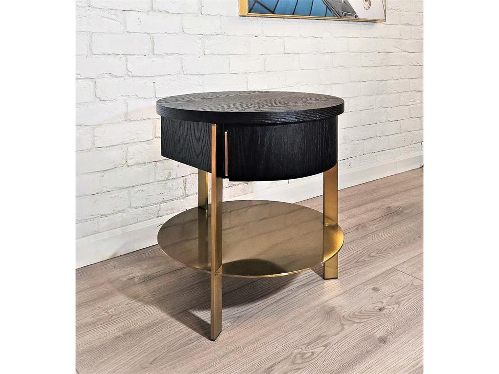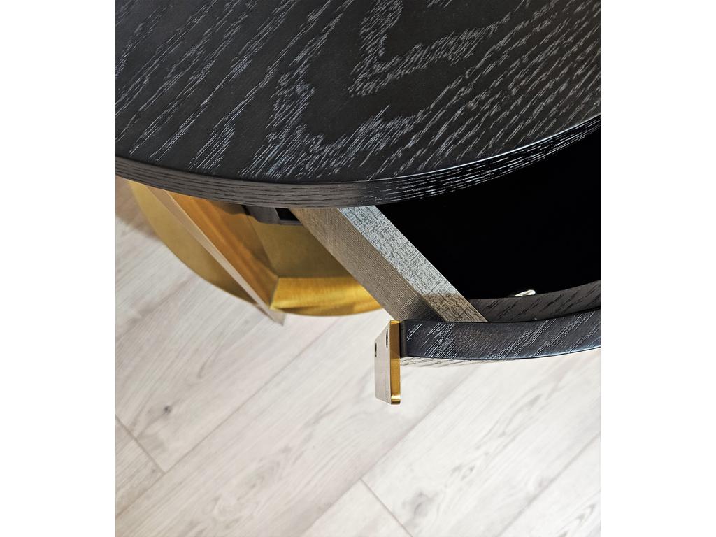 Изящная прикроватная тумба STONE выполнена в современном минималистичном стиле. Тумба представлена с одним выдвижным ящиком и открытой полкой. Варианты исполнения: левая или правая. Верхняя часть - цвет венге. Основание и полка - латунь браш. На дне ящика покрытие черный бархат. Выдвижная система со скрытым креплением и доводчиком. Внутренние размеры ящика: