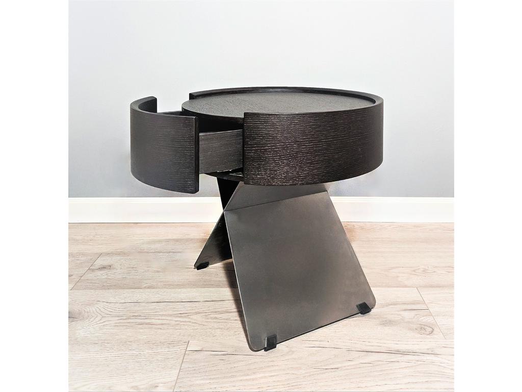 Ножки из металла, цвет матовый никель. Небольшое углубление столешницы предотвращает падение мелких предметов. Выдвижная система со скрытым креплением и доводчиком. Легкое выдвижение ящика за внешний фасад.