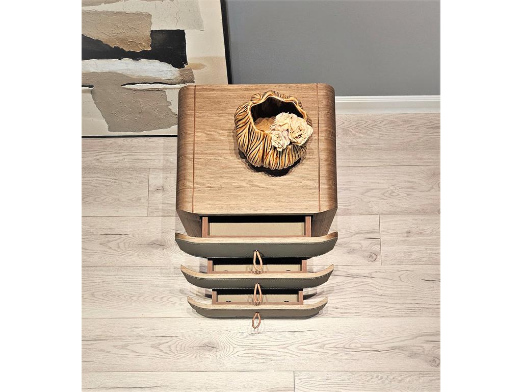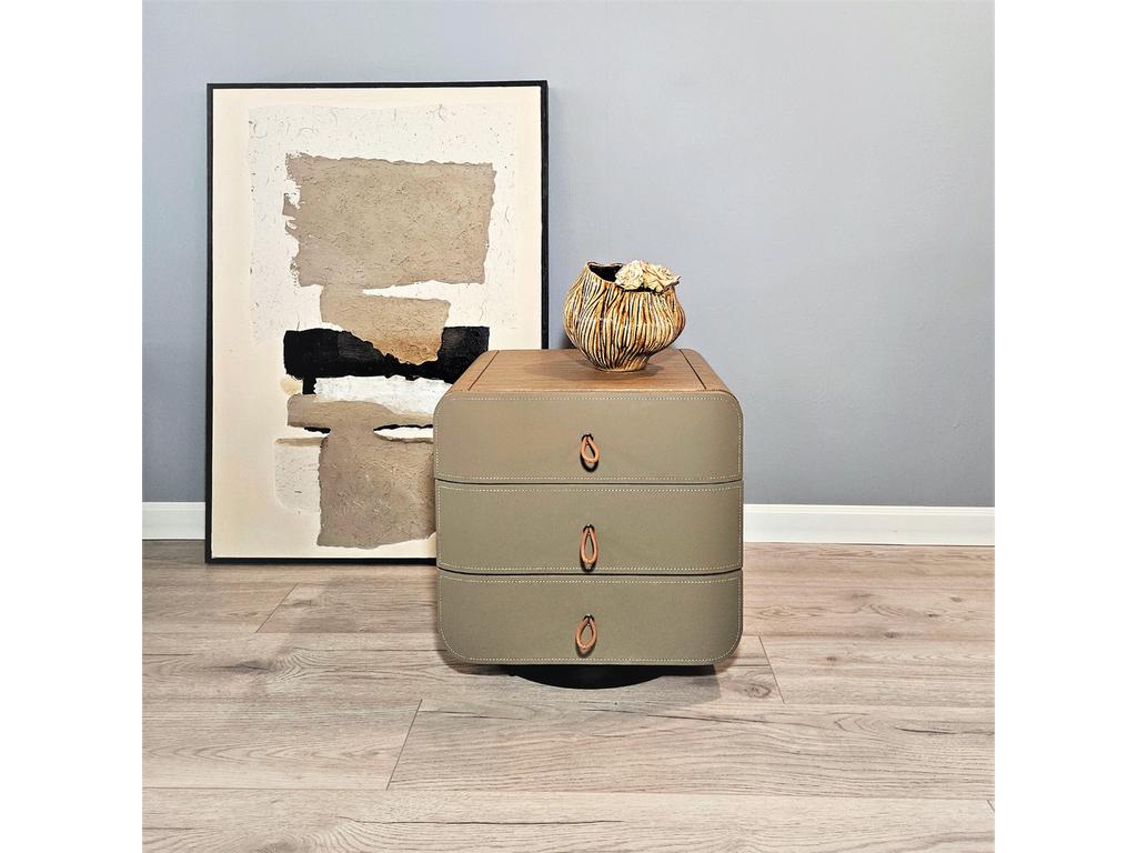 Уникальные ручки-петельки из экокожи придают тумбе очаровательный вид.