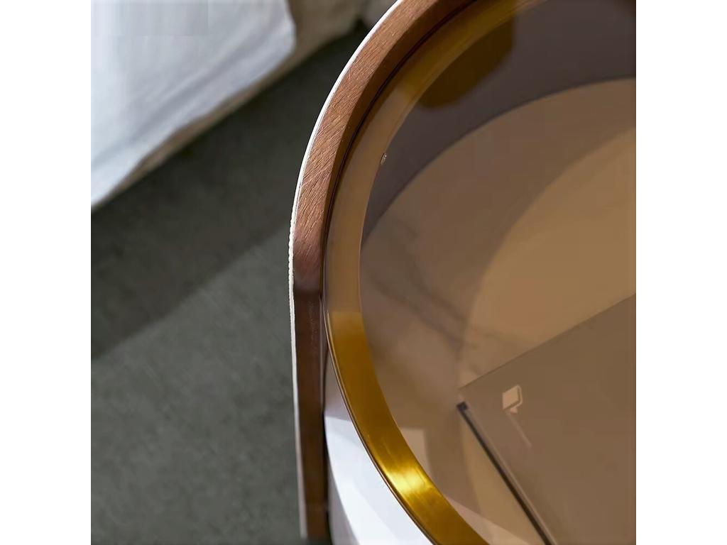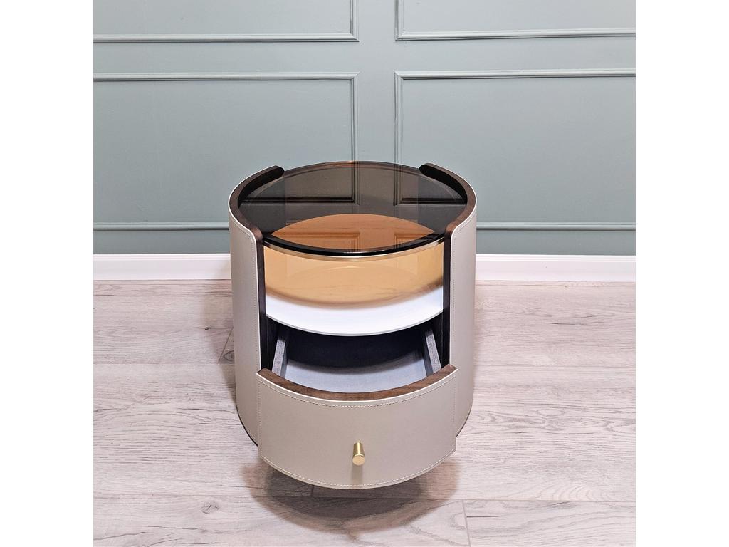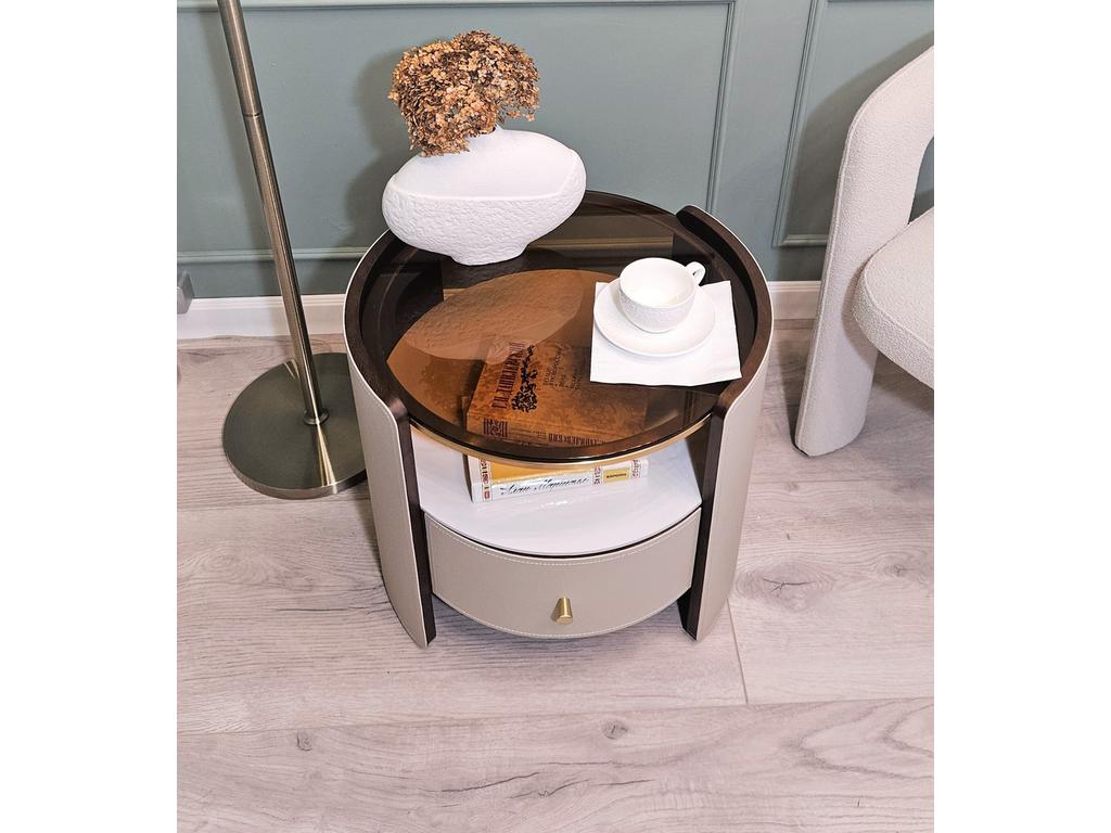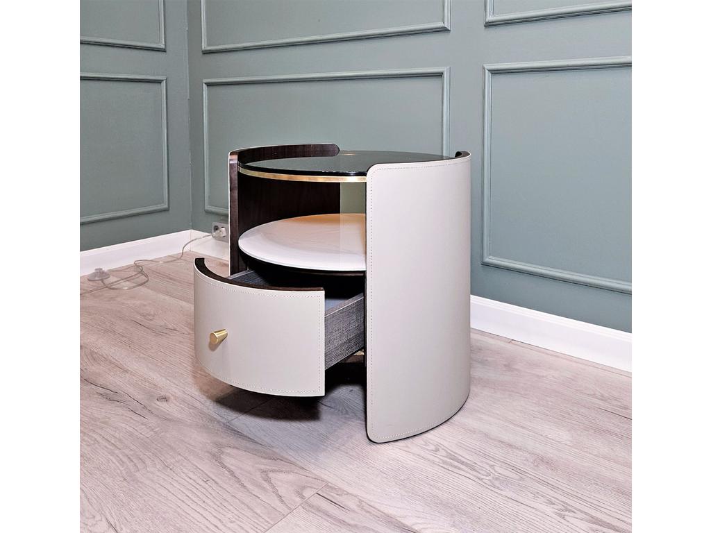 Изящная прикроватная тумба выполнена в современном минималистичном стиле. Тумба выполнена из МДФ с отделкой из экокожи. Столешница из закаленного стекла.