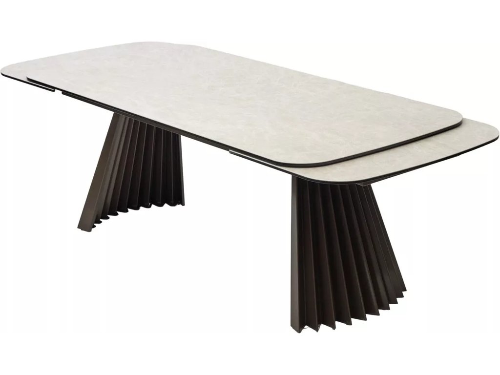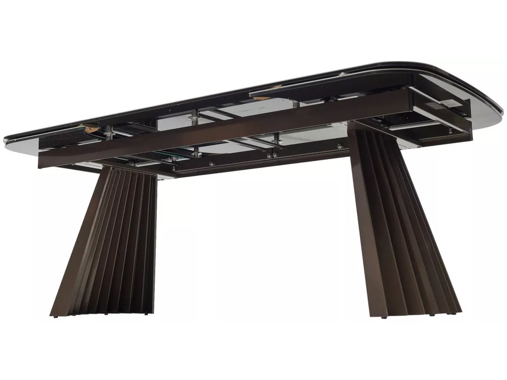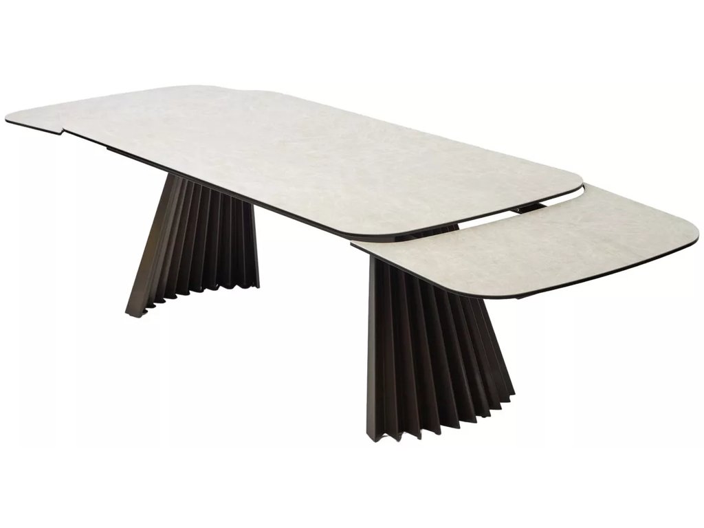 двухсторонняя торцевая система раскладывания, две независимые вставки по 50 см позволяют увеличить длину столешницы на 250 см и 300 см при необходимости;