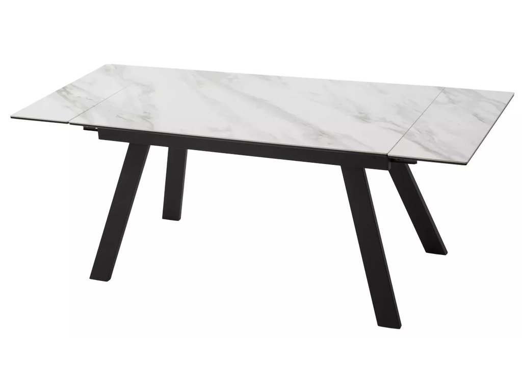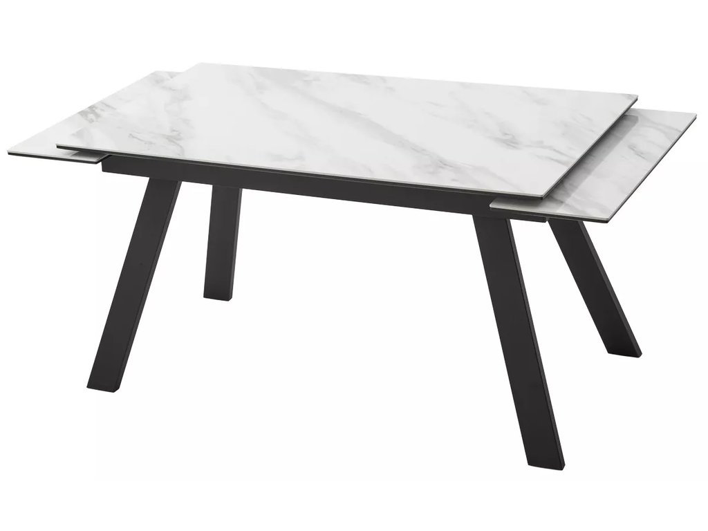 Описание модели: две вставки по краям столешницы по 30см; столешница - глянцевая керамика 5,5 мм + 16 мм МДФ; основание стола - металл, цвет - черный; Упакован в 1 коробку.
