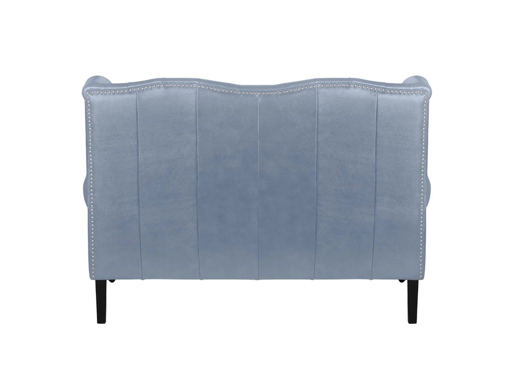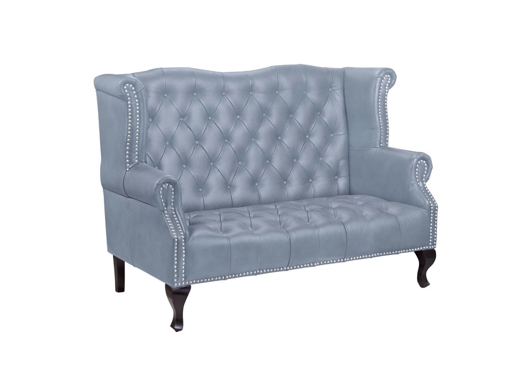 Серый кожаный диван из букового массива располагается на четырех коротких ножках черного цвета: прямых задних и эффектно изогнутых – передних. Спинка с волнообразным верхом слегка загибается по бокам и соединяется с мягкими подлокотниками. Поверхность дивана украшена стяжкой и декоративными заклепками по периметру. Глубина места для сидения 64 см. Сборка не требуется. Вес 47 кг.