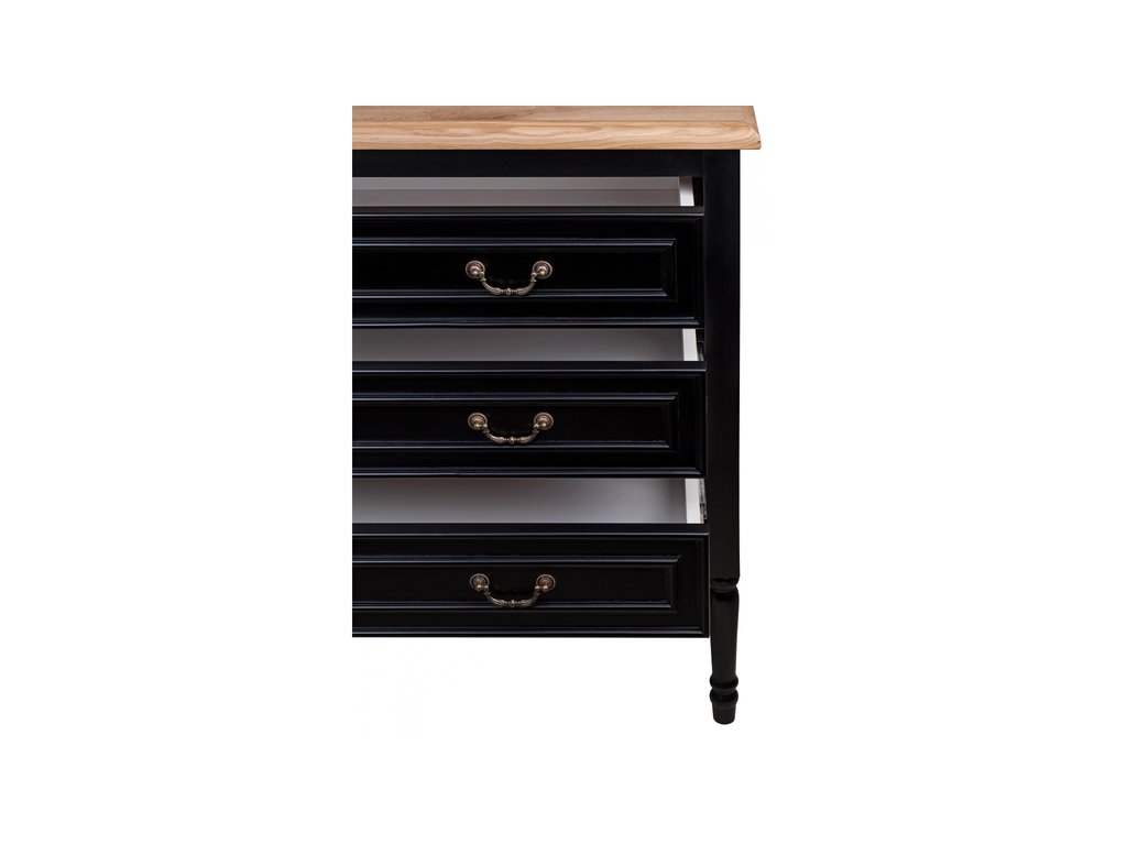 Черный комод из дуба Kaliko oak отличается вместительностью за счет своих трех больших выдвижных ящиков. Поверхность комода окрашена в медовый цвет, а сам комод имеет глубокий черный цвет. Он привнесет в интерьер любого стиля функциональность и несомненно украсит любое помещение своим грациозным видом. Сборка не требуется. Вес 39 кг.