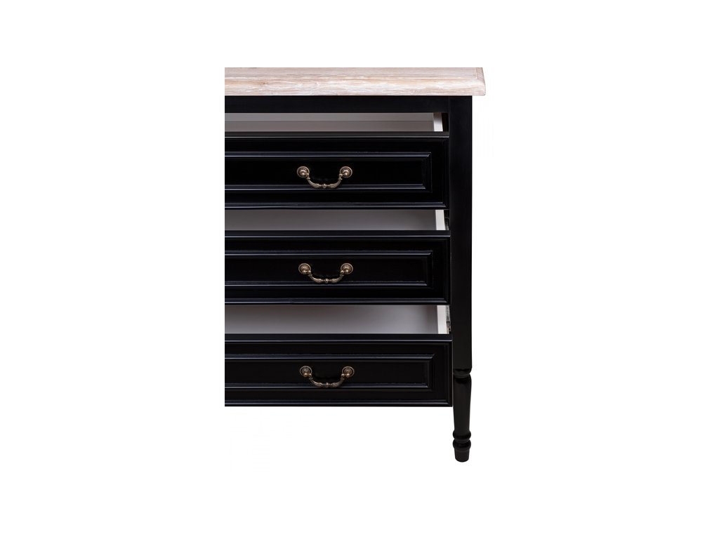 Черный комод из дуба Kaliko old oak отличается вместительностью за счет своих трех больших выдвижных ящиков. Столешница комода c эффектом состаренного дуба , а сам комод имеет глубокий черный цвет. Он привнесет в интерьер любого стиля функциональность и несомненно украсит любое помещение своим грациозным видом. Сборка не требуется. Вес 39 кг.