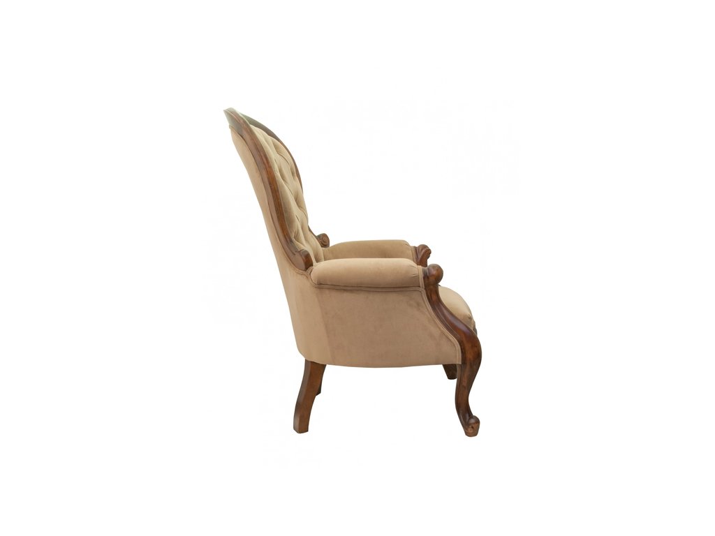 Кресло Madre light brown оригинальной формы, с плавными контурами и изящно изогнутыми ножками, способное украсить любой изысканный интерьер. Велюровая обивка светло-коричневого цвета приятна на ощупь и эффектно выглядит, придает изделию солидный внешний вид. Спинка, по верху которой проходит деревянная лакированная окантовка, украшена объемной декоративной стежкой. Мягкие округлые подлокотники и широкое сиденье способствуют полному расслаблению при отдыхе. Сборка не требуется. Вес 15 кг.