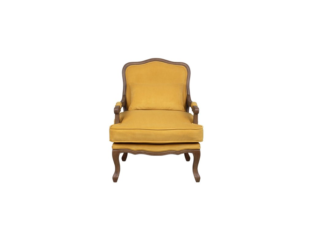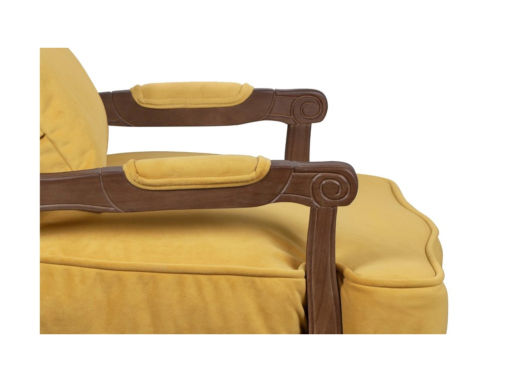 Роскошное кресло Nitro с изящными фигурными ножками из массива каучукового дерева и мягкой велюровой обивкой желтого оттенка станет элегантным акцентом вашего интерьера — его уютное широкое сиденье, плавные линии спинки и удобные подлокотники дарят ощущение тепла и комфорта, создавая атмосферу расслабленной гармонии. Это кресло — не просто предмет мебели, а уютный уголок для отдыха, где каждая деталь продумана для вашего наслаждения. Глубина места для сидения 60 см. Высота сидения 46 см. Ширина места для сидения 58 см. Высота спинки 53 см. Высота подлокотника 60 см. Сборка не требуется. Вес 15 кг.