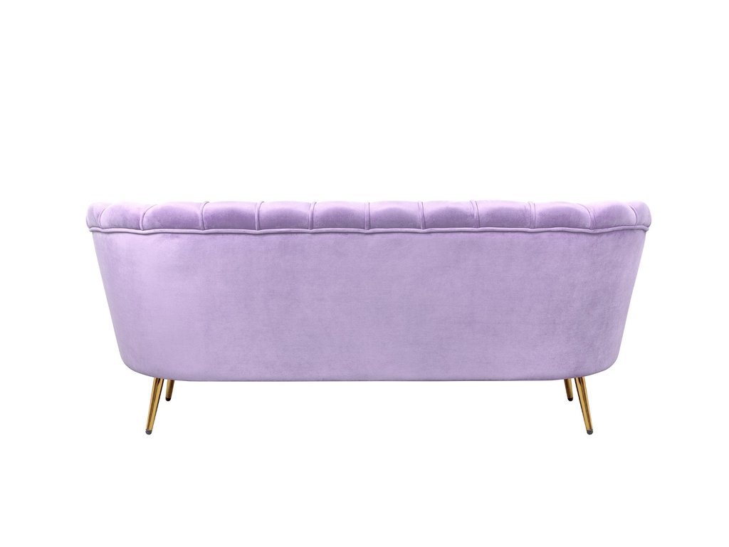 Фиолетовый диван с обивкой из велюра Pearl triple purple на основе каркаса из натурального дерева, с бархатистой велюровой обивкой, декорированной продольными стежками на внутренней стороне спинки. Модель выполнена в фиолетовом цвете, по форме напоминает створку раковины, огибающей жемчужину – круглую подушку для сидения. Короткие металлические ножки с блестящей золотистой поверхностью расходятся в виде лучей под небольшим наклоном к основанию. Мебель роскошно выглядит и подходит для оформления элитных интерьеров. Высота сидения 49 см. Глубина места для сидения 56 см. Ширина места для сидения 155 см. Высота спинки 30 см. Требуется сборка. Вес 30 кг.