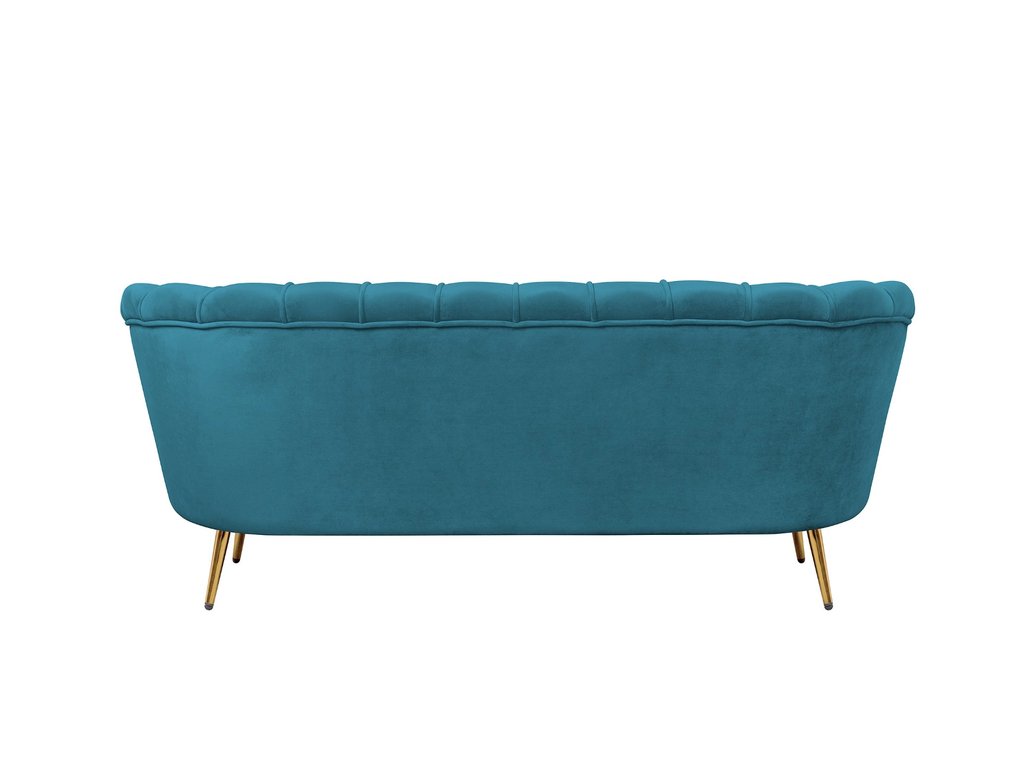 Сине-зеленый диван с обивкой из велюра Pearl triple marine velvet на основе каркаса из натурального дерева, с бархатистой велюровой обивкой, декорированной продольными стежками на внутренней стороне спинки. Модель выполнена в глубоком сине-зеленом цвете, по форме напоминает створку раковины, огибающей жемчужину – круглую подушку для сидения. Короткие металлические ножки с блестящей золотистой поверхностью расходятся в виде лучей под небольшим наклоном к основанию. Мебель роскошно выглядит и подходит для оформления элитных интерьеров. Высота сидения 49 см. Глубина места для сидения 56 см. Ширина места для сидения 155 см. Высота спинки 30 см. Требуется сборка. Вес 30 кг.