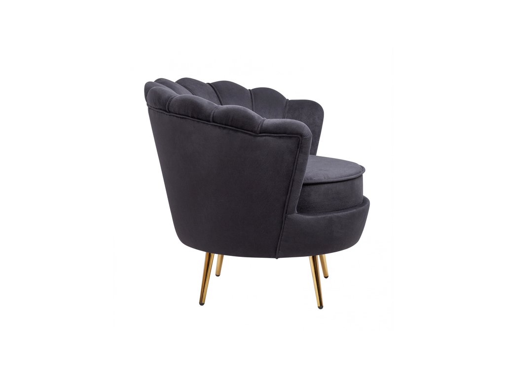 Дизайнерское кресло Pearl black на основе каркаса из натурального дерева, с бархатистой велюровой обивкой, декорированной продольными стежками на внутренней стороне спинки. Модель выполнена в велюре черного цвете, по форме напоминает створку раковины, огибающей жемчужину – круглую подушку для сидения. Короткие металлические ножки с блестящей золотистой поверхностью расходятся в виде лучей под небольшим наклоном к основанию. Мебель роскошно выглядит и подходит для оформления элитных интерьеров. Высота сидения 45 см. Глубина места для сидения 55 см. Ширина места для сидения 55 см. Высота спинки