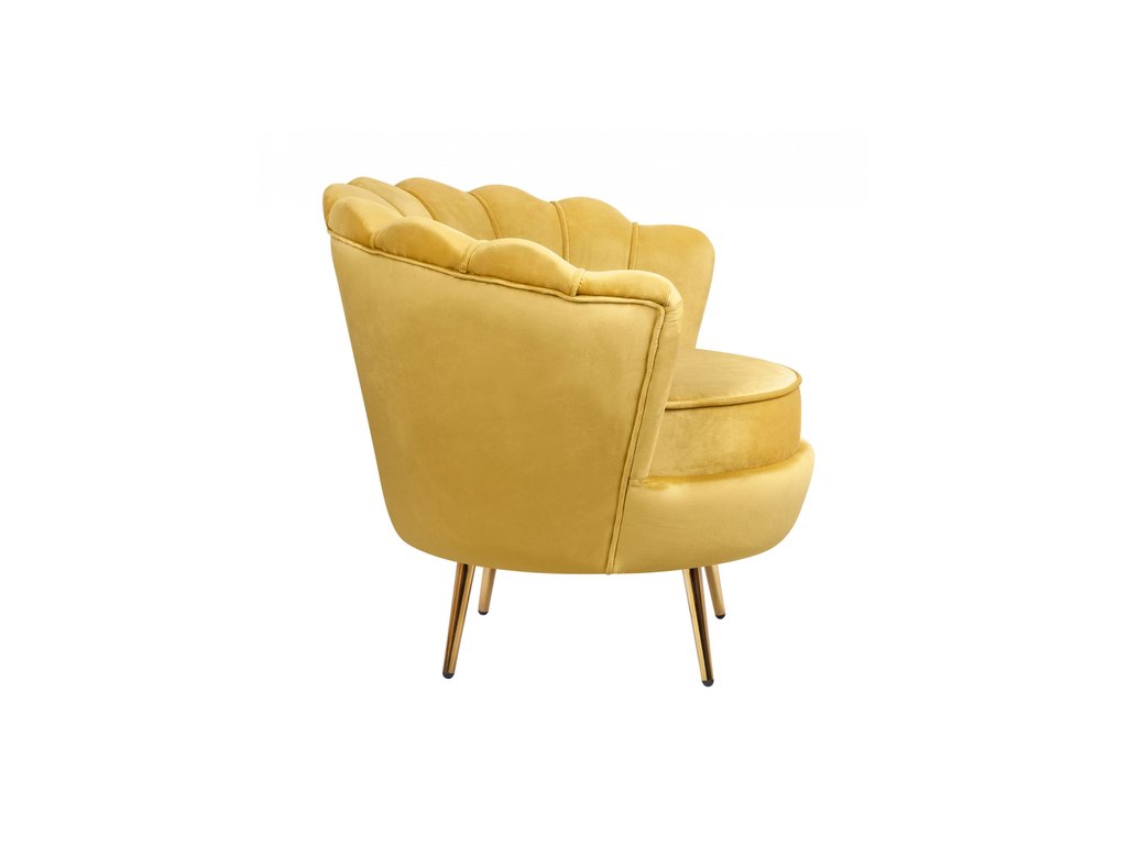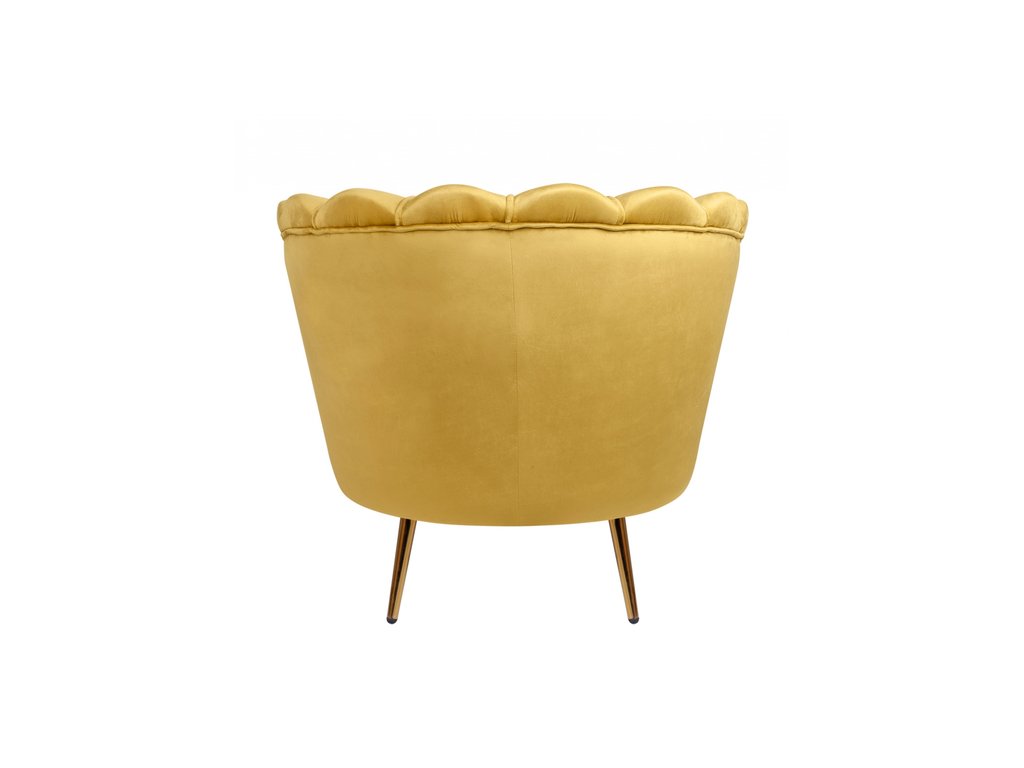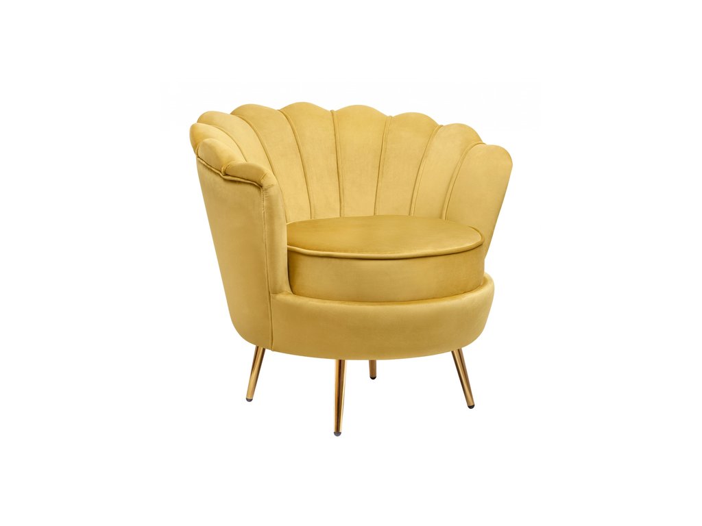 Дизайнерское кресло Pearl yellow на основе каркаса из натурального дерева, с бархатистой велюровой обивкой, декорированной продольными стежками на внутренней стороне спинки. Модель выполнена велюра желтый цвете, по форме напоминает створку раковины, огибающей жемчужину – круглую подушку для сидения. Короткие металлические ножки с блестящей золотистой поверхностью расходятся в виде лучей под небольшим наклоном к основанию. Мебель роскошно выглядит и подходит для оформления элитных интерьеров. Высота сидения 45 см. Глубина места для сидения 55 см. Ширина места для сидения 55 см. Высота спинки