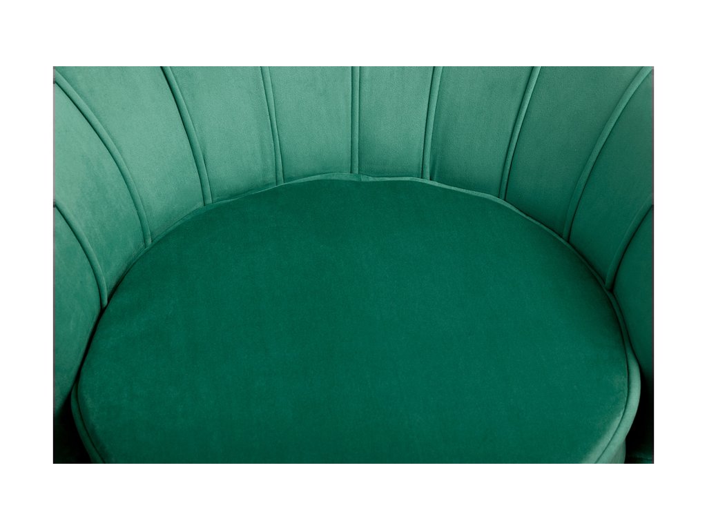 Дизайнерское кресло Pearl green v2 на основе каркаса из натурального дерева, с велюровой обивкой, декорированной продольными стежками на внутренней стороне спинки. Модель выполнена велюре зеленого цвета, по форме напоминает створку раковины, огибающей жемчужину – круглую подушку для сидения. Короткие металлические ножки с блестящей золотистой поверхностью расходятся в виде лучей под небольшим наклоном к основанию. Мебель роскошно выглядит и подходит для оформления элитных интерьеров. Высота сидения 45 см. Глубина места для сидения 55 см. Ширина места для сидения 55 см. Высота спинки 34 см. Высота от пола до подлокотника 66 см. Требуется сборка. Вес 13 кг.