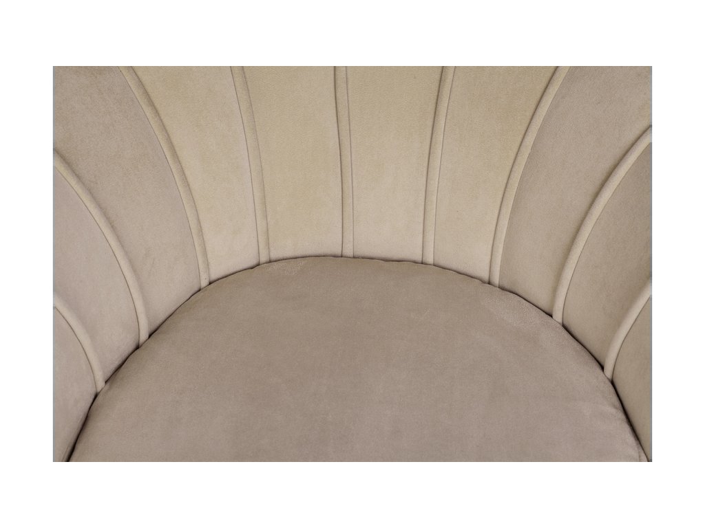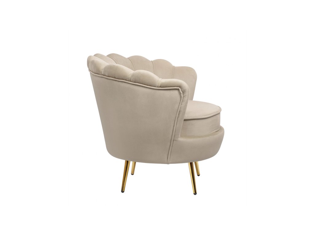 Дизайнерское кресло Pearl taupe на основе каркаса из натурального дерева, с велюровой обивкой, декорированной продольными стежками на внутренней стороне спинки. Модель выполнена велюре коричневого цвета, по форме напоминает створку раковины, огибающей жемчужину – круглую подушку для сидения. Короткие металлические ножки с блестящей золотистой поверхностью расходятся в виде лучей под небольшим наклоном к основанию. Мебель роскошно выглядит и подходит для оформления элитных интерьеров. Высота сидения 45 см. Глубина места для сидения 55 см. Ширина места для сидения 55 см. Высота спинки 34 см. Высота от пола до подлокотника 66 см. Требуется сборка. Вес 13 кг.