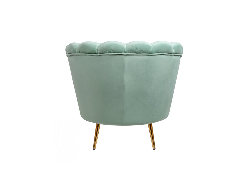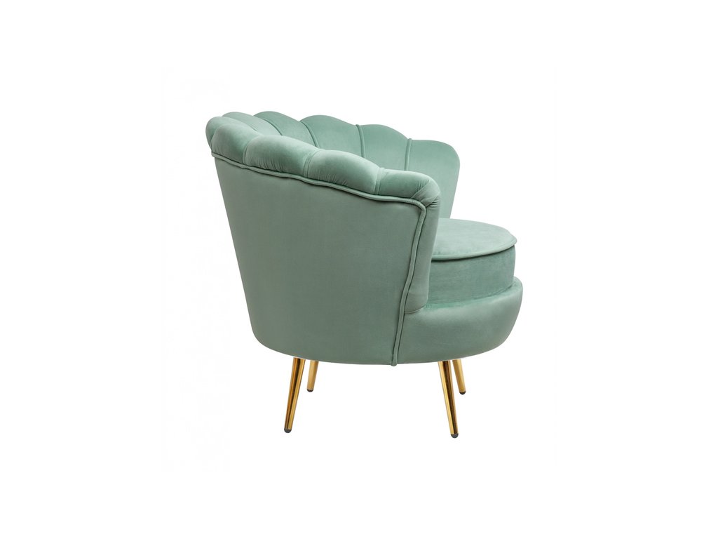 Дизайнерское кресло Pearl green на основе каркаса из натурального дерева, с бархатистой велюровой обивкой, декорированной продольными стежками на внутренней стороне спинки. Модель выполнена велюра зеленого цвете, по форме напоминает створку раковины, огибающей жемчужину – круглую подушку для сидения. Короткие металлические ножки с блестящей золотистой поверхностью расходятся в виде лучей под небольшим наклоном к основанию. Мебель роскошно выглядит и подходит для оформления элитных интерьеров. Высота сидения 45 см. Глубина места для сидения 55 см. Ширина места для сидения 55 см. Высота спинки 34 см. Высота от пола до подлокотника 66 см. Требуется сборка. Вес 13 кг.