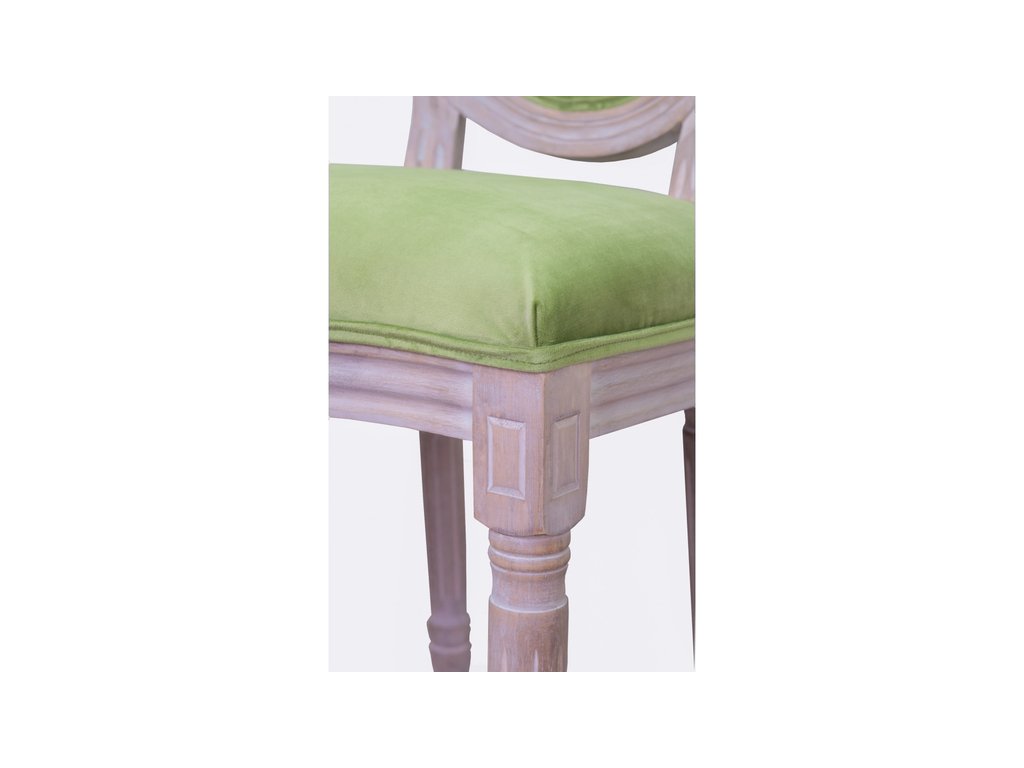 Cтул Volker green с округлой спинкой напоминающей медальон, выполнен в элегантном классическом французском стиле. Основание модели выполнено из массива каучукового дерева, искусственно состаренного. Такой стул эффектно смотрится как в контрастной, так и в однотонной обстановке. Глубина места для сидения 40 см. Высота сидения 50 см. Ширина места для сидения 50 см. Высота спинки 45 см. Сборка не требуется. Вес 6 кг.
