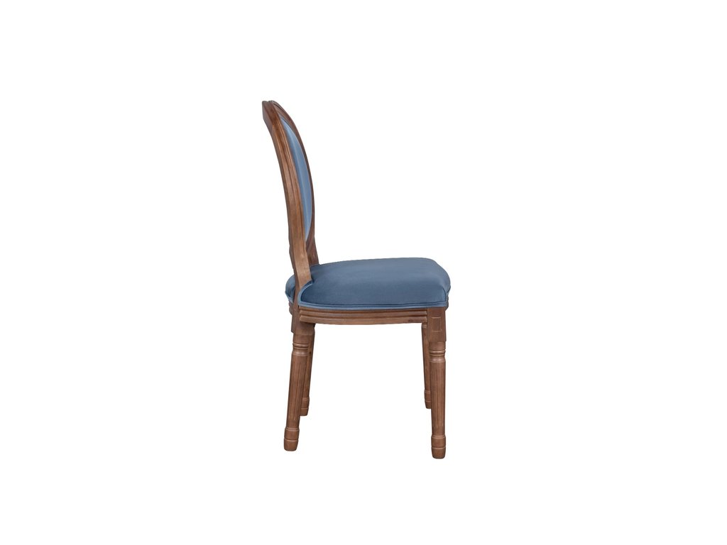 Cтул Volker Leg Blue V2 с округлой спинкой напоминающей медальон, выполнен в элегантном классическом французском стиле. Основание модели выполнено из массива каучукового дерева, покрытого тонировкой. Глубина места для сидения 40 см. Высота сидения 50 см. Ширина места для сидения 50 см. Высота спинки 45 см. Сборка не требуется. Вес 6 кг.