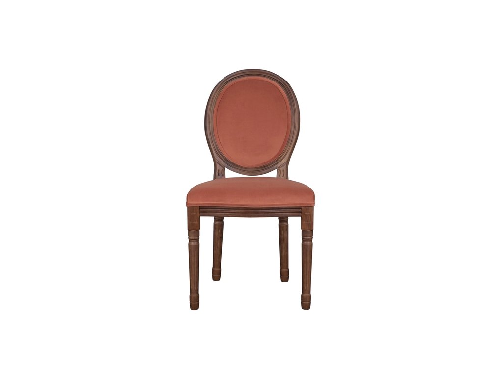 Cтул Volker Leg Red с округлой спинкой напоминающей медальон, выполнен в элегантном классическом французском стиле. Основание модели выполнено из массива каучукового дерева, покрытого тонировкой. Глубина места для сидения 40 см. Высота сидения 50 см. Ширина места для сидения 50 см. Высота спинки 45 см. Сборка не требуется. Вес 6 кг.