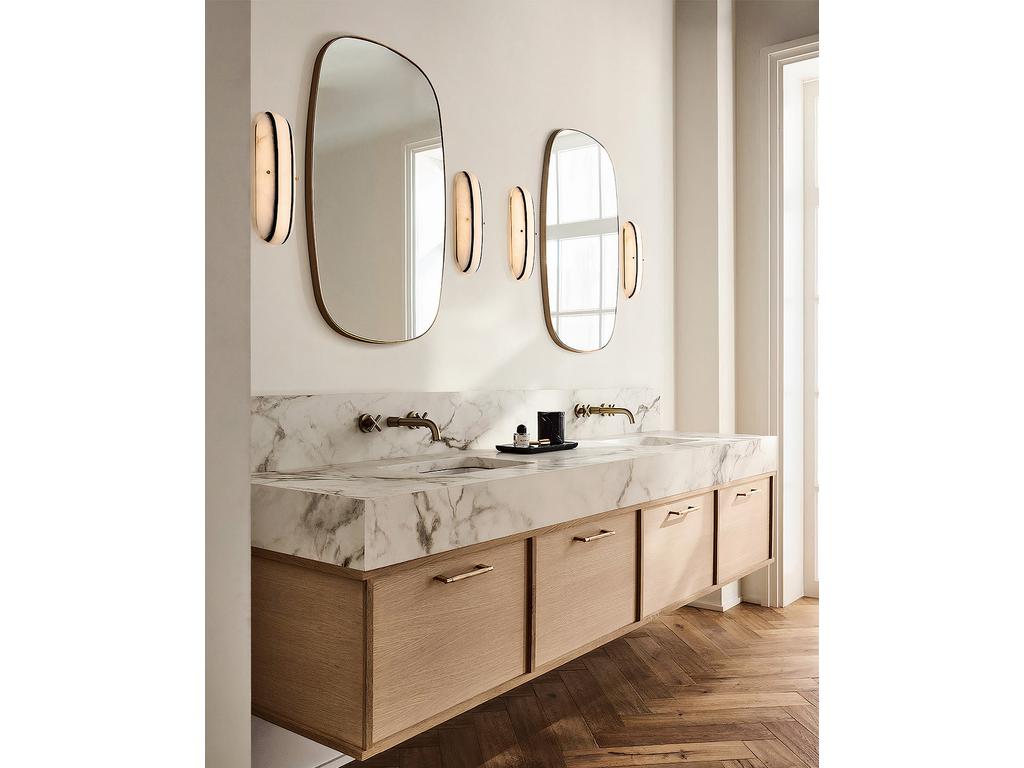 Золотое настенное зеркало “Вейл” – это идеальное решение для создания стильного и элегантного интерьера в вашем доме. Оно привлекает внимание своей изысканной и утонченной золотистой рамой, которая придает зеркалу неповторимый шарм. Габариты зеркала идеально подобраны для его размещения в различных помещениях вашего дома. Зеркало можно разместить в спальне, прихожей или ванной комнате, не перегружая интерьер и сохраняя пространство светлым и воздушным. Данное зеркало представляет собой идеальный баланс между практичностью, элегантным дизайном и функциональностью. Золотистая рама зеркала “Вейл” прекрасно сочетается с различными стилями интерьера, от классического до современного, и станет неотъемлемым элементом вашего домашнего декора. Цвет рамы зеркала: Брашированная латунь. Материалы зеркала: Рама – Металл. Отражающее полотно – Стекло (Зеркало). Задник – МДФ. Вес 9,8 кг.