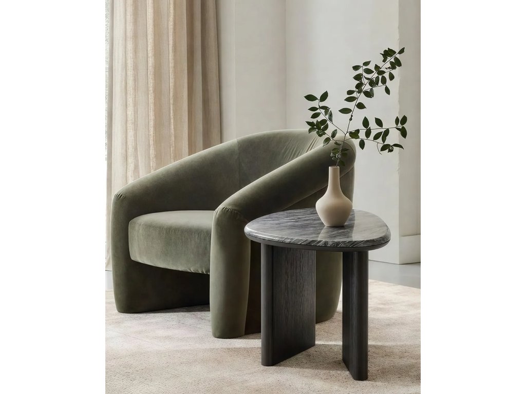 Приставной столик “Эктор” отличается выразительным и лаконичным дизайном. Глубокий тёмный оттенок делает модель универсальной и позволяет легко вписать её как в современный минималистичный интерьер, так и в более камерные, атмосферные пространства. Компактные размеры позволяют использовать столик в качестве акцентного элемента рядом с креслом или диваном. Он сочетает в себе функциональность, выразительность и скульптурную эстетику. Материалы столика: МДФ, шпон дуба, мрамор (столешница). Сборка не требуется. Вес 16 кг.